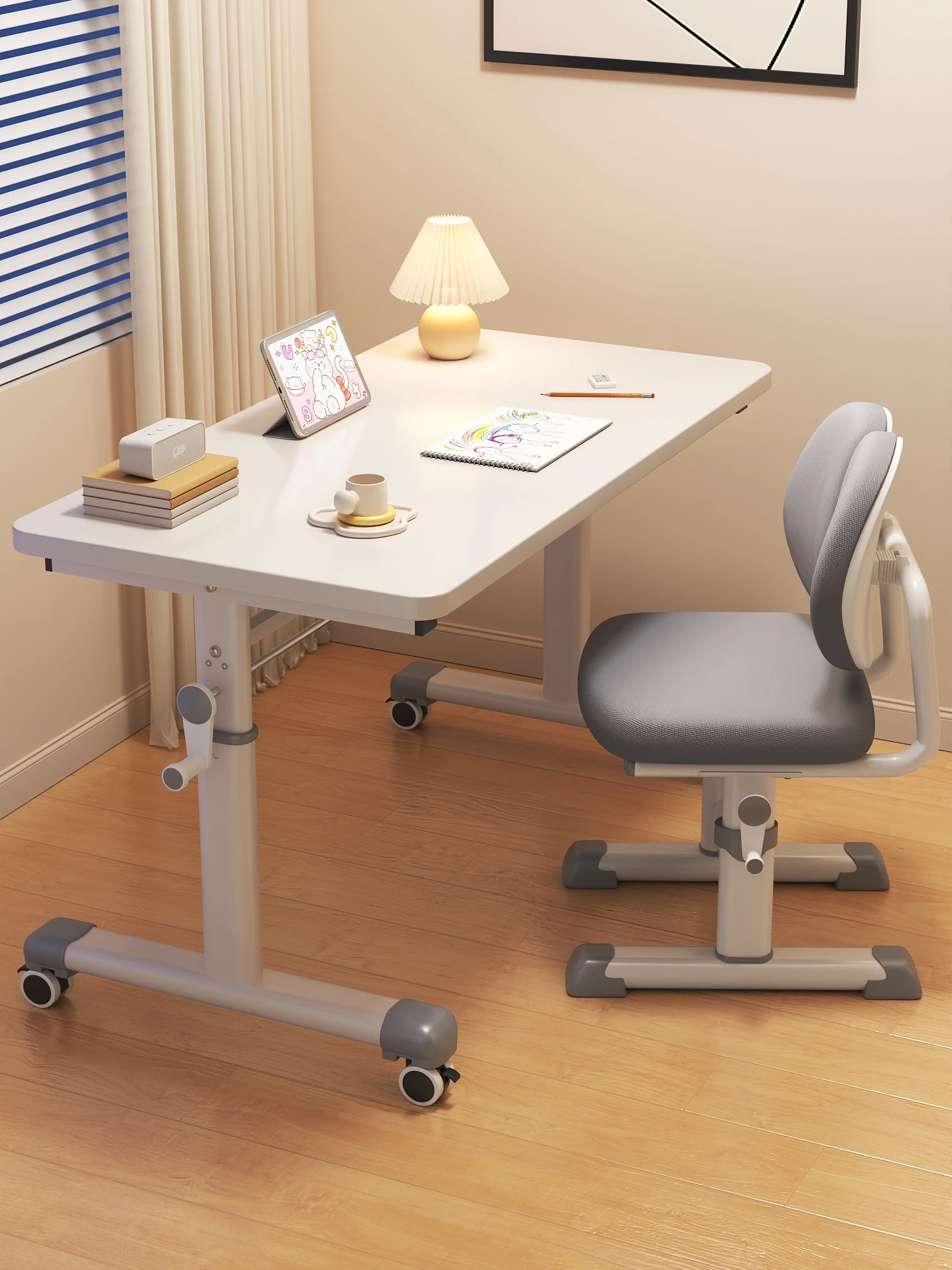 移動可能な子供用学習デスク!小学生向けの家庭用シンプル昇降デスクと椅子セット、快適な学習環境を提供します。お子様の成長に合わせて高さ調整可能!勉強がもっと楽しくなるアイテムです。