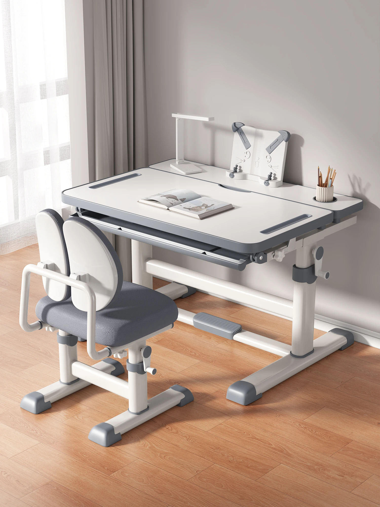 子供用学習デスク 新型昇降式 書きやすいデスク&チェアセット 家庭用 小学生向け 簡単な宿題デスク お子様の成長に合わせて調整可能!快適な学習環境を実現します。