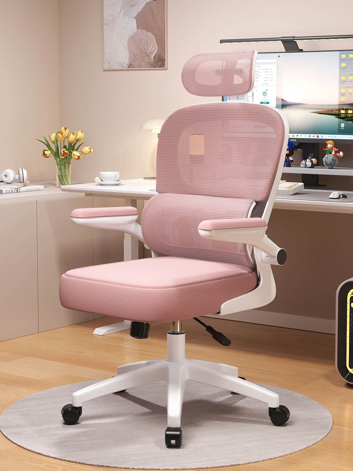 Pink Ergonomic Chair for Women - Comfortable Home and Office Chair for Long Sitting, Perfect for Napping or Study in Dorms, Stylish Computer Chair