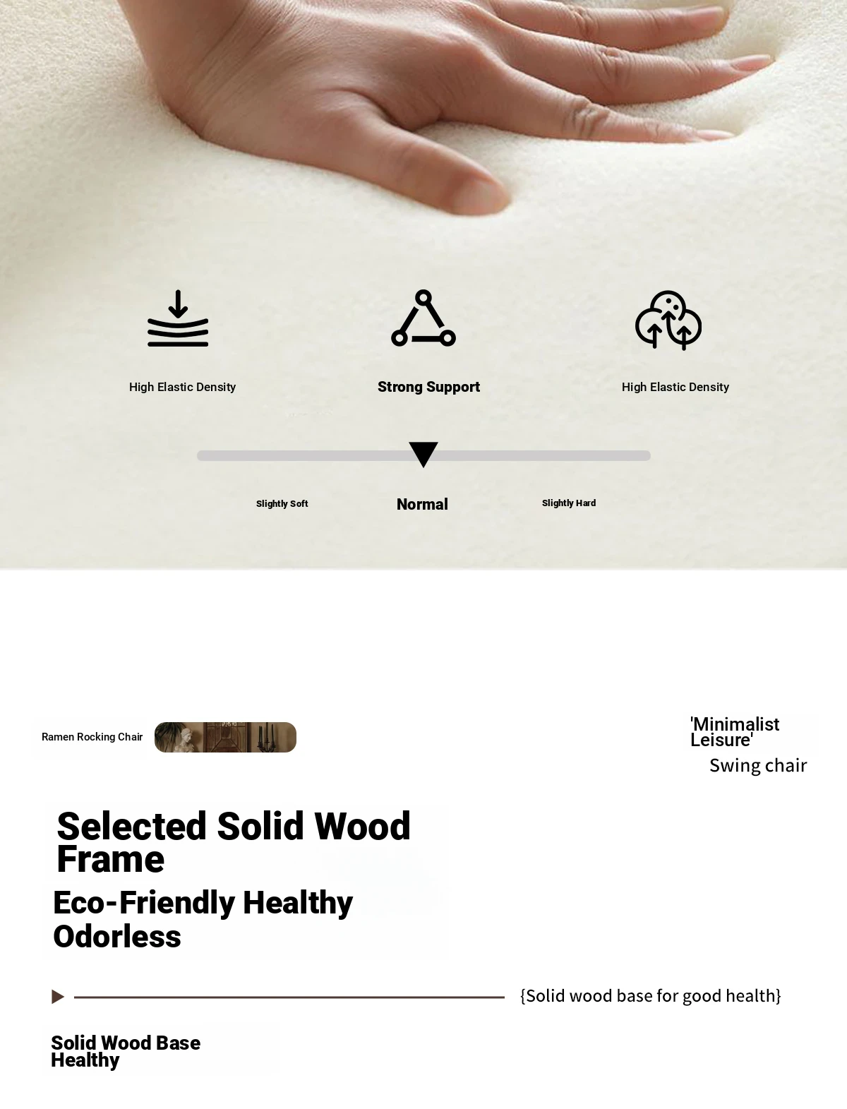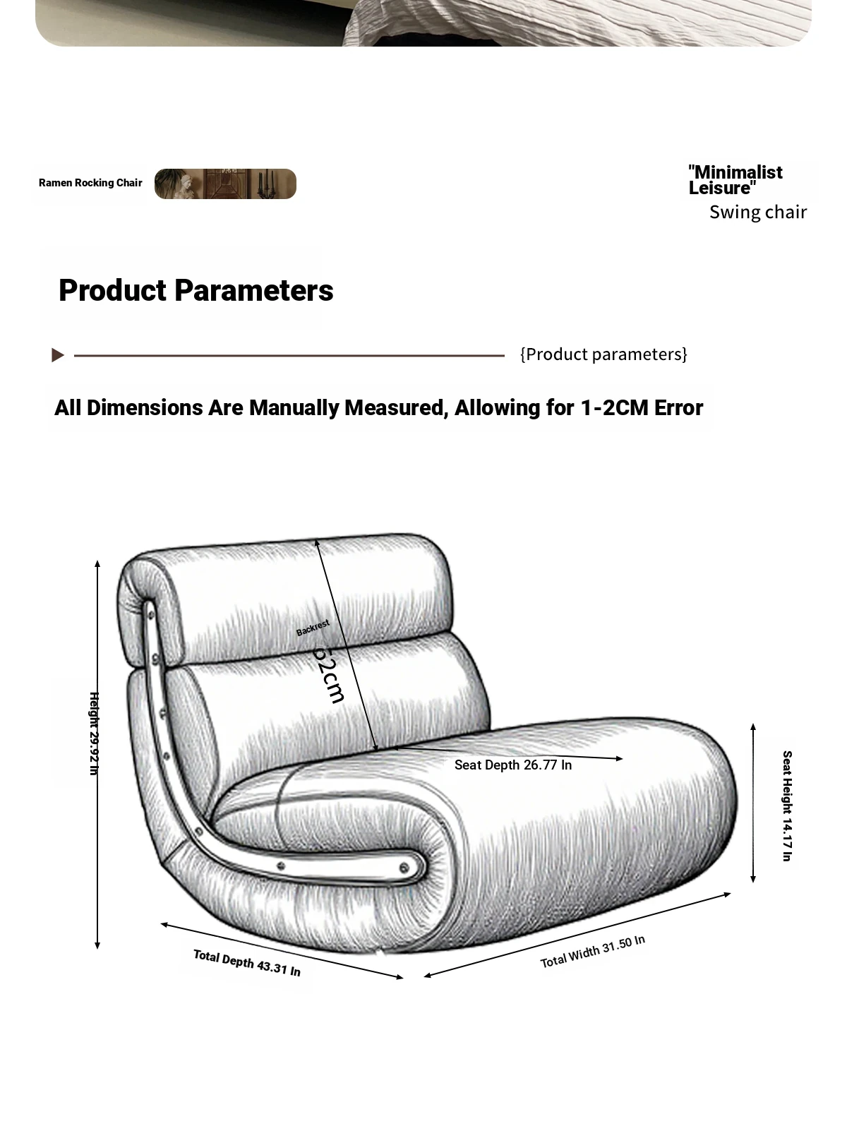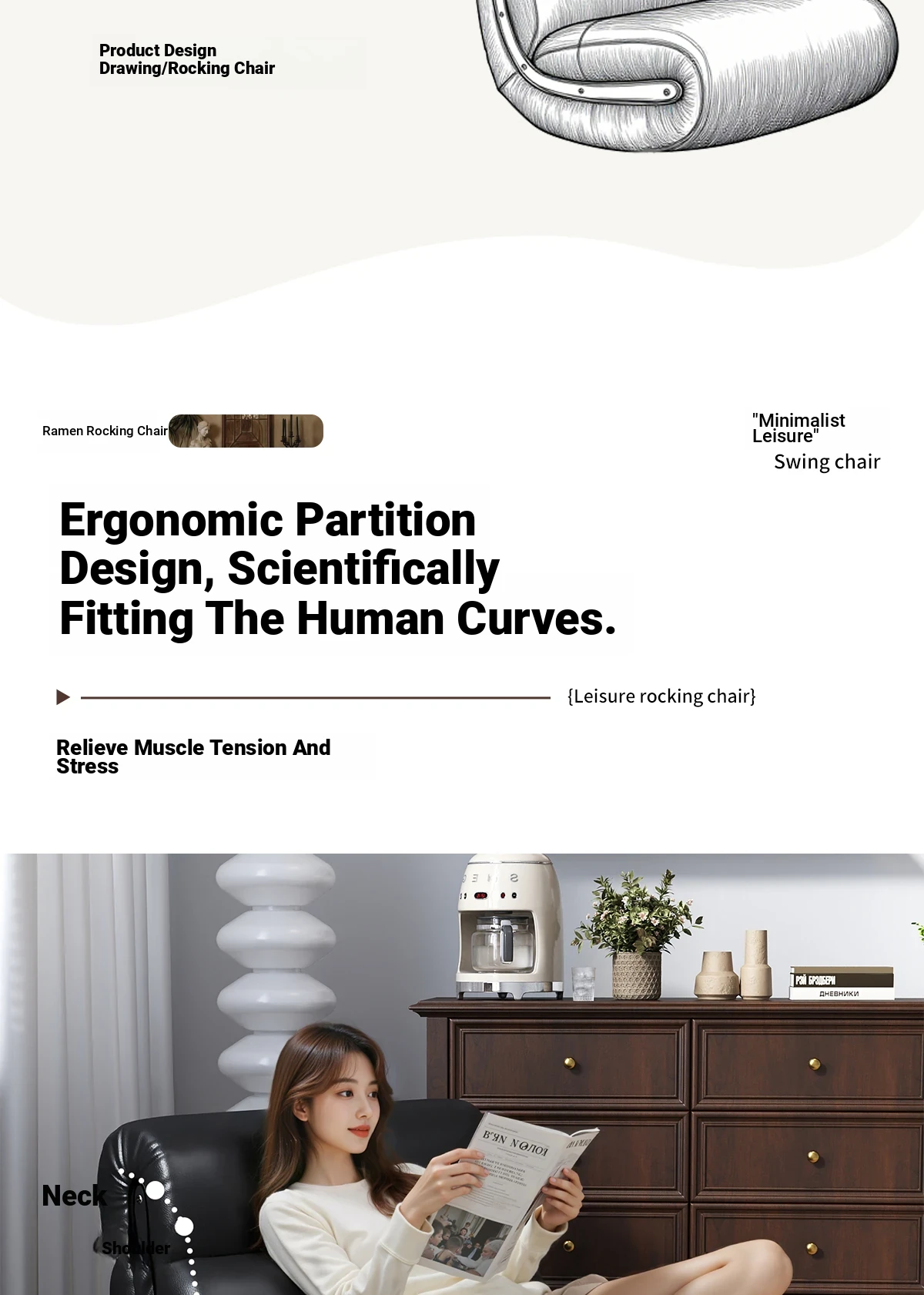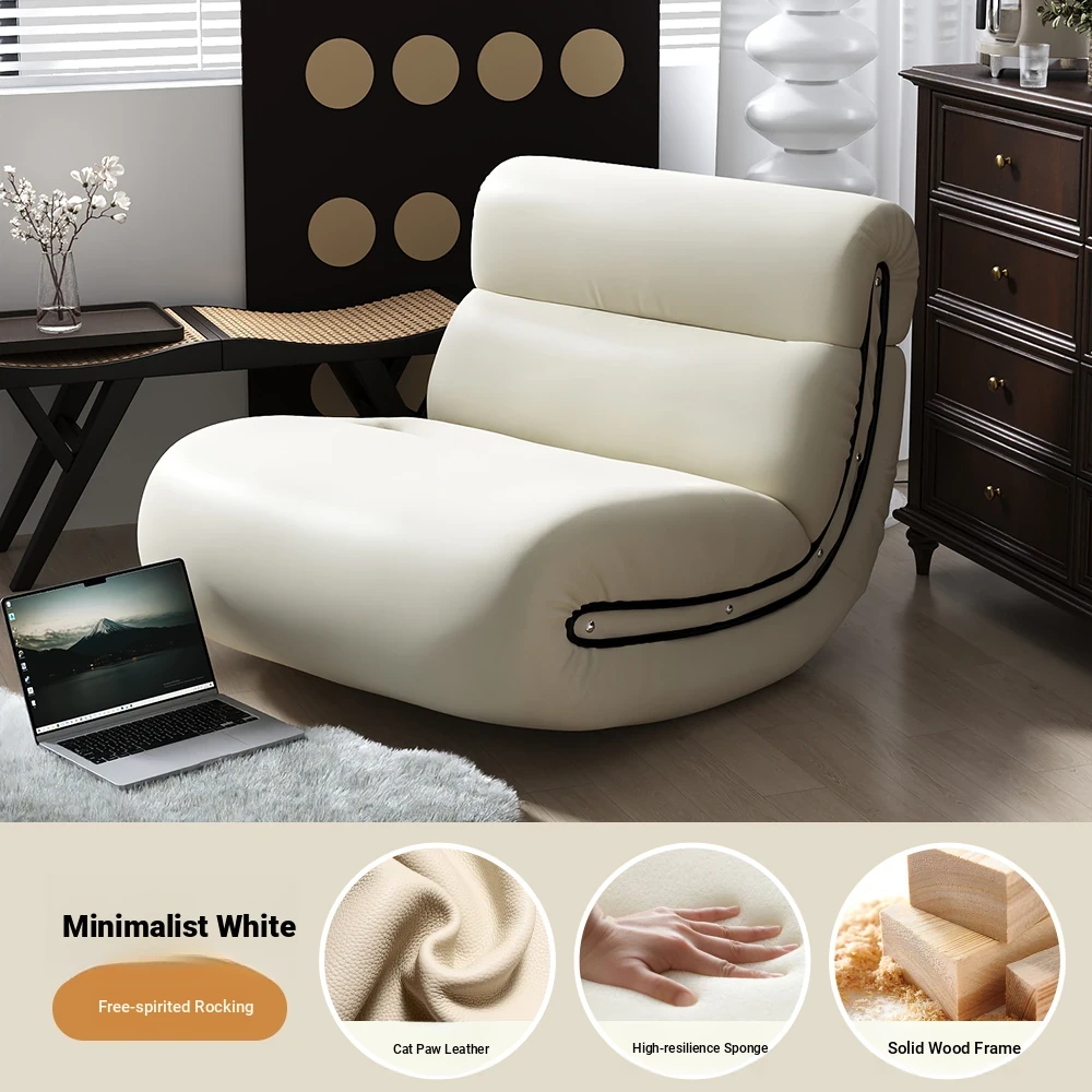 [Pet Friendly Cat Claw Skin] 80 Large Seat Width, Minimalist White-Ramen Rocking Chair, Delivery to Home
