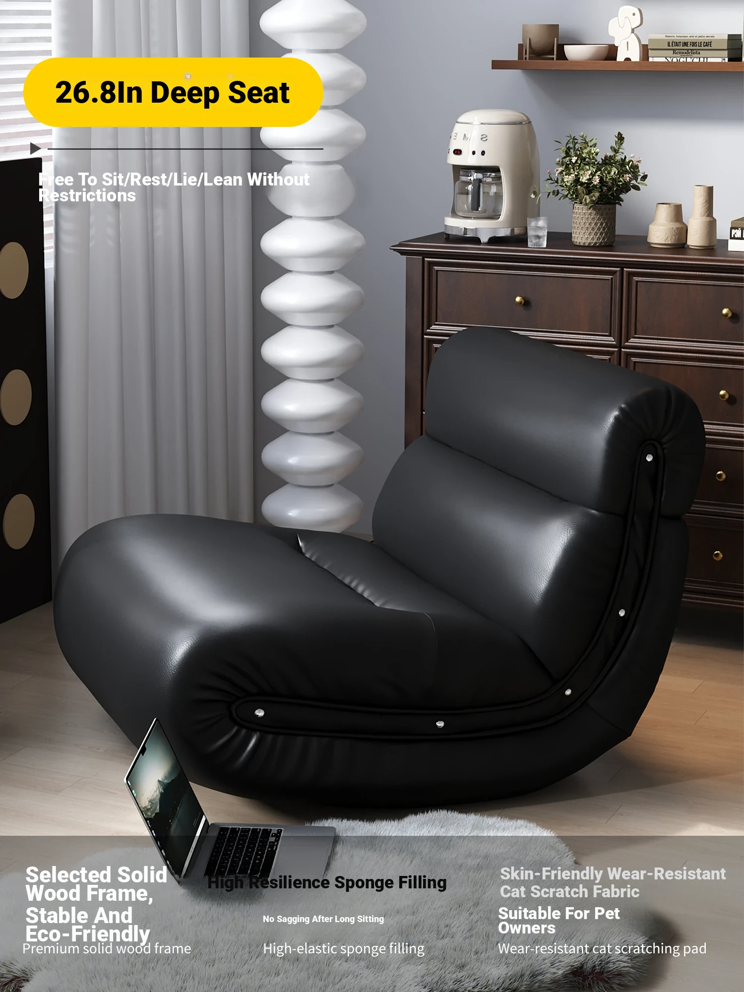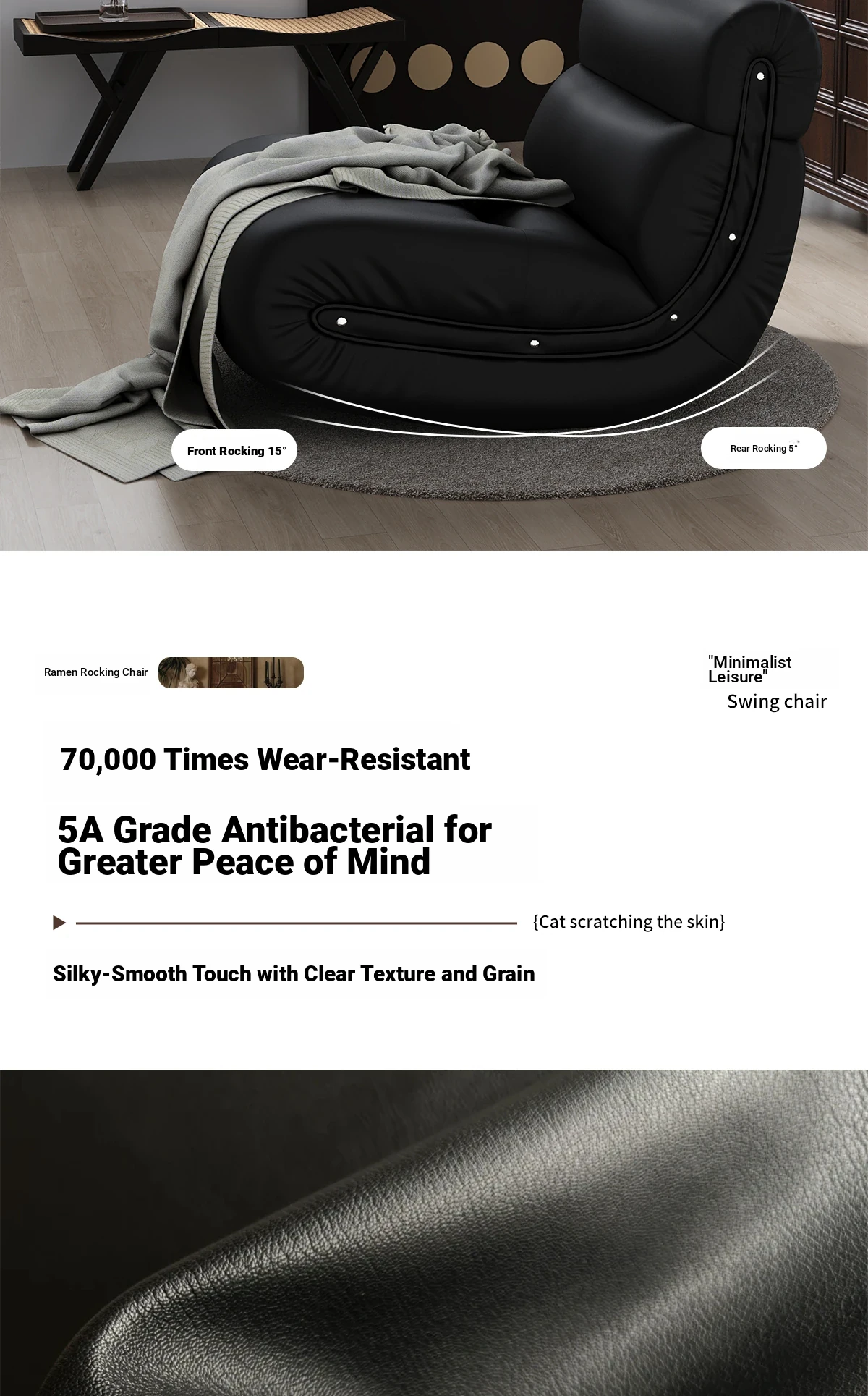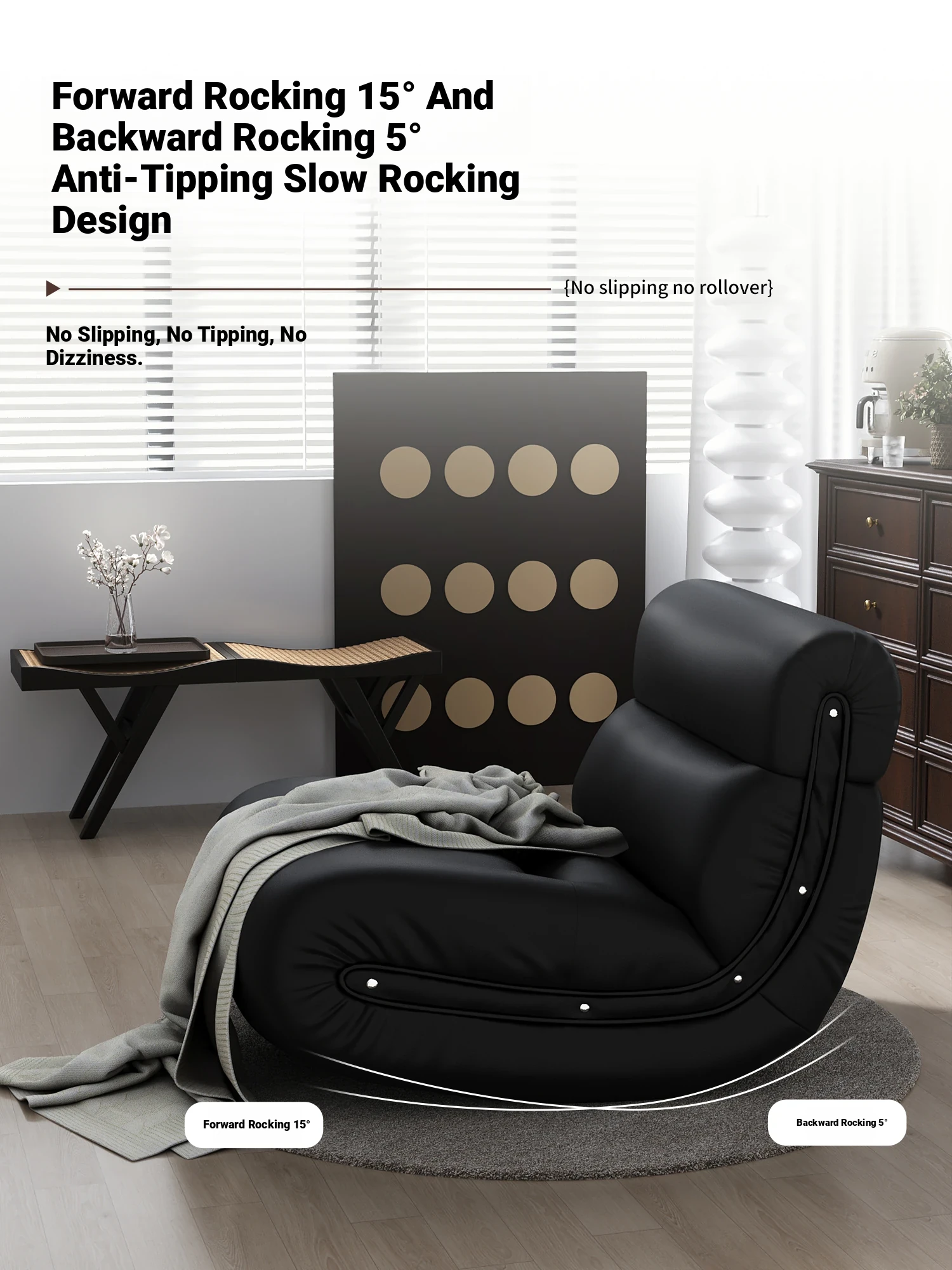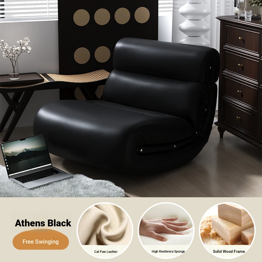 [Pet Friendly Cat Claw Skin] 80 Large Seat Width, Elegant Black-Ramen Rocking Chair, Delivery to Home