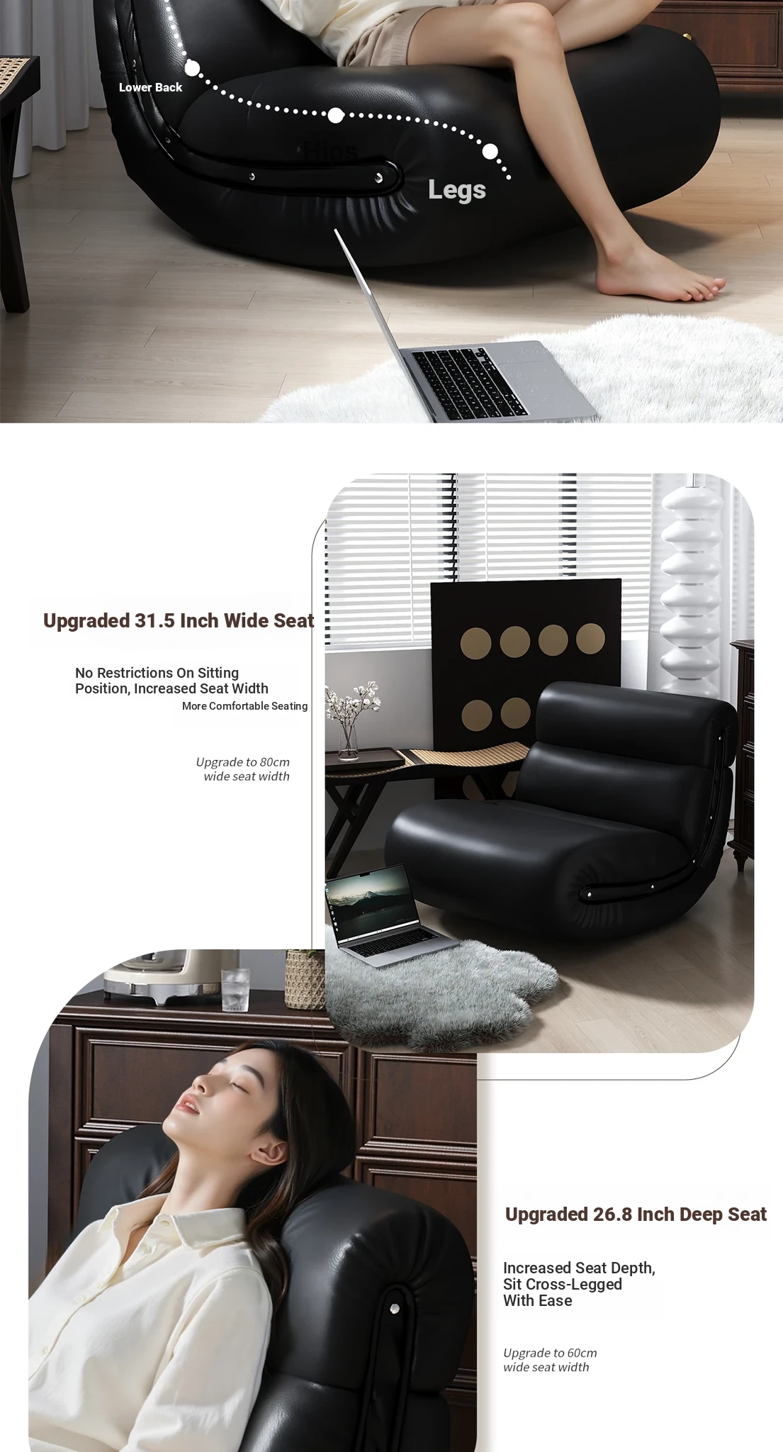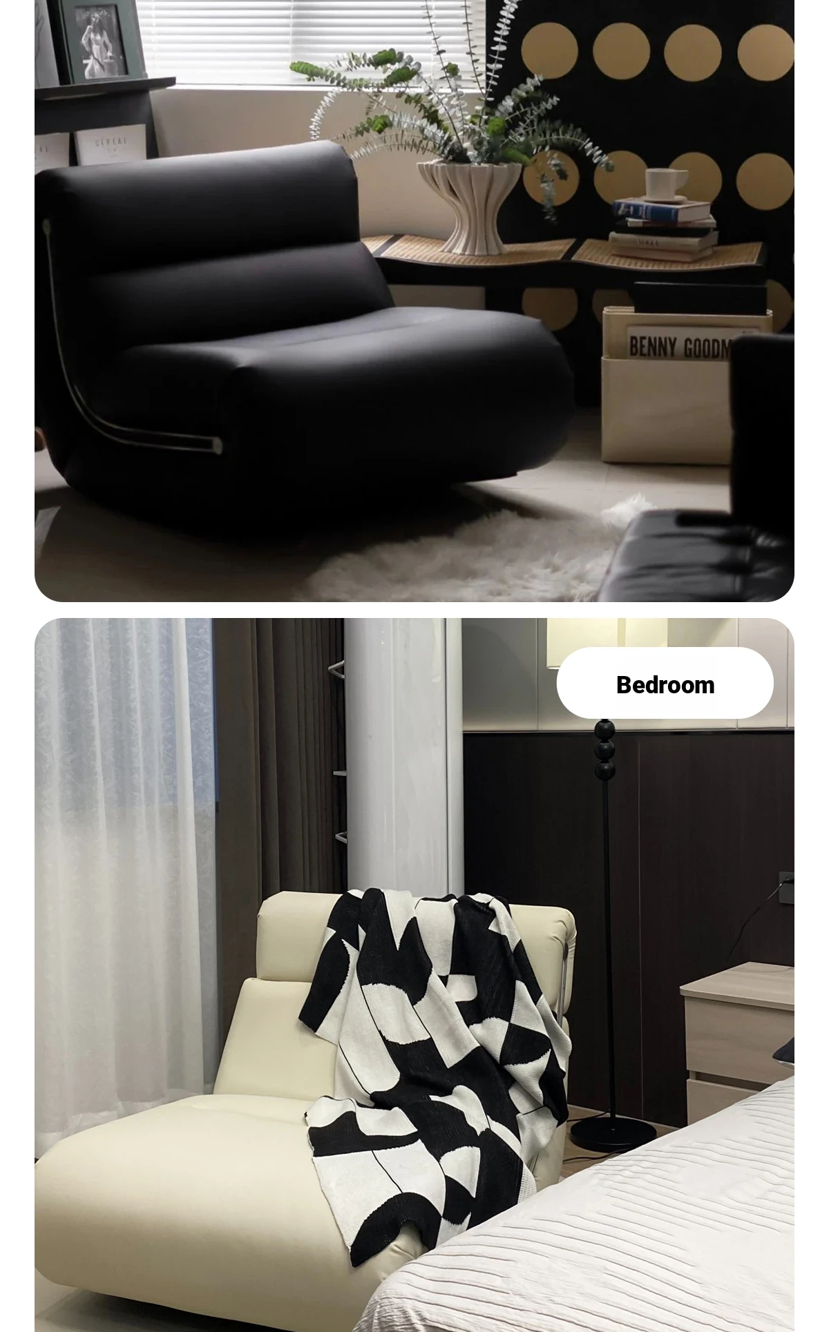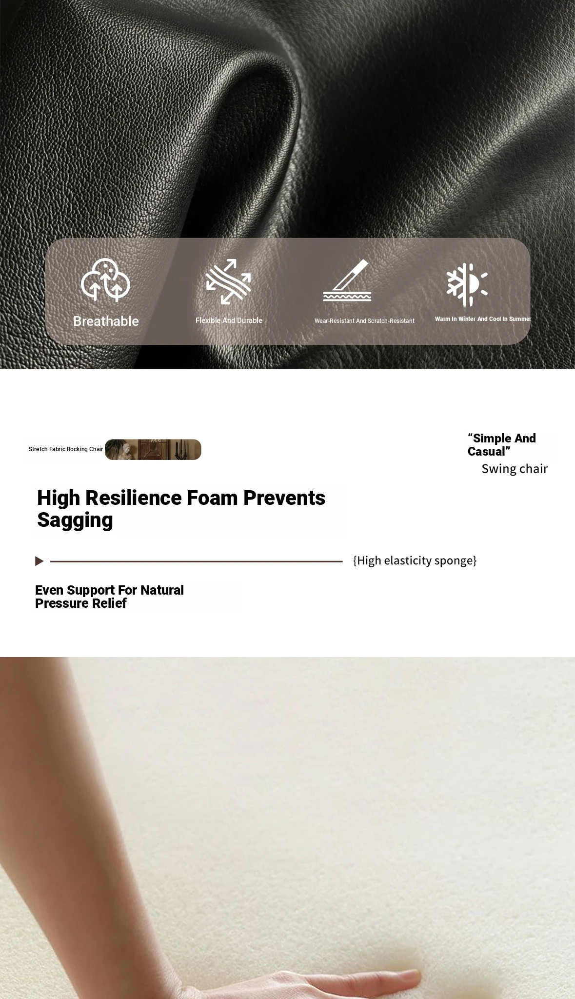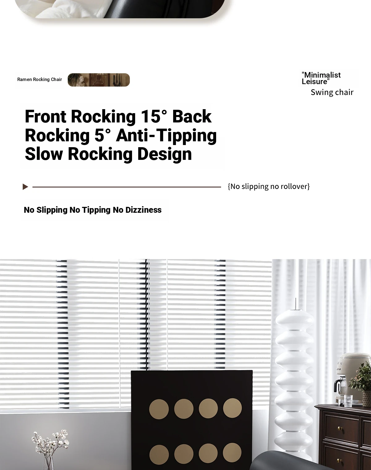 [Pet Friendly Cat Claw Skin] 80 Large Seat Width, Elegant Black-Ramen Rocking Chair, Delivery to Home