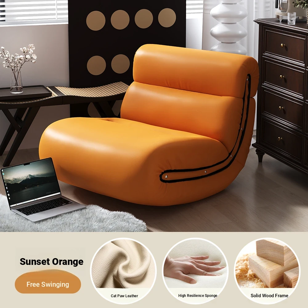 [Pet Friendly Cat Claw Skin] 80 Large Seat Wide, Sunset Orange-Ramen Rocking Chair, Delivery to Home
