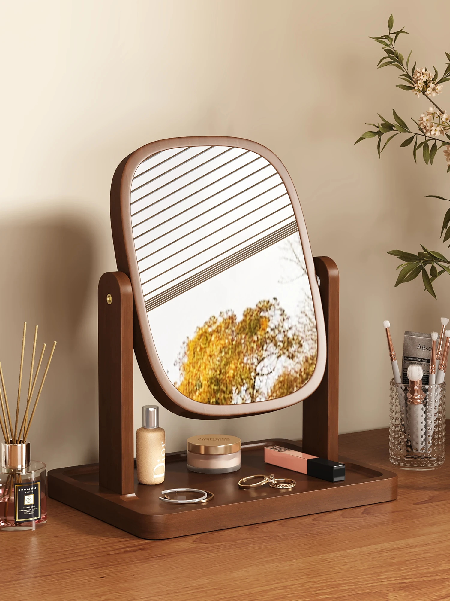 Vintage Wooden Makeup Mirror - Stylish Desktop Vanity Mirror for Home and Bedroom, Perfect for Beauty Routine and Grooming