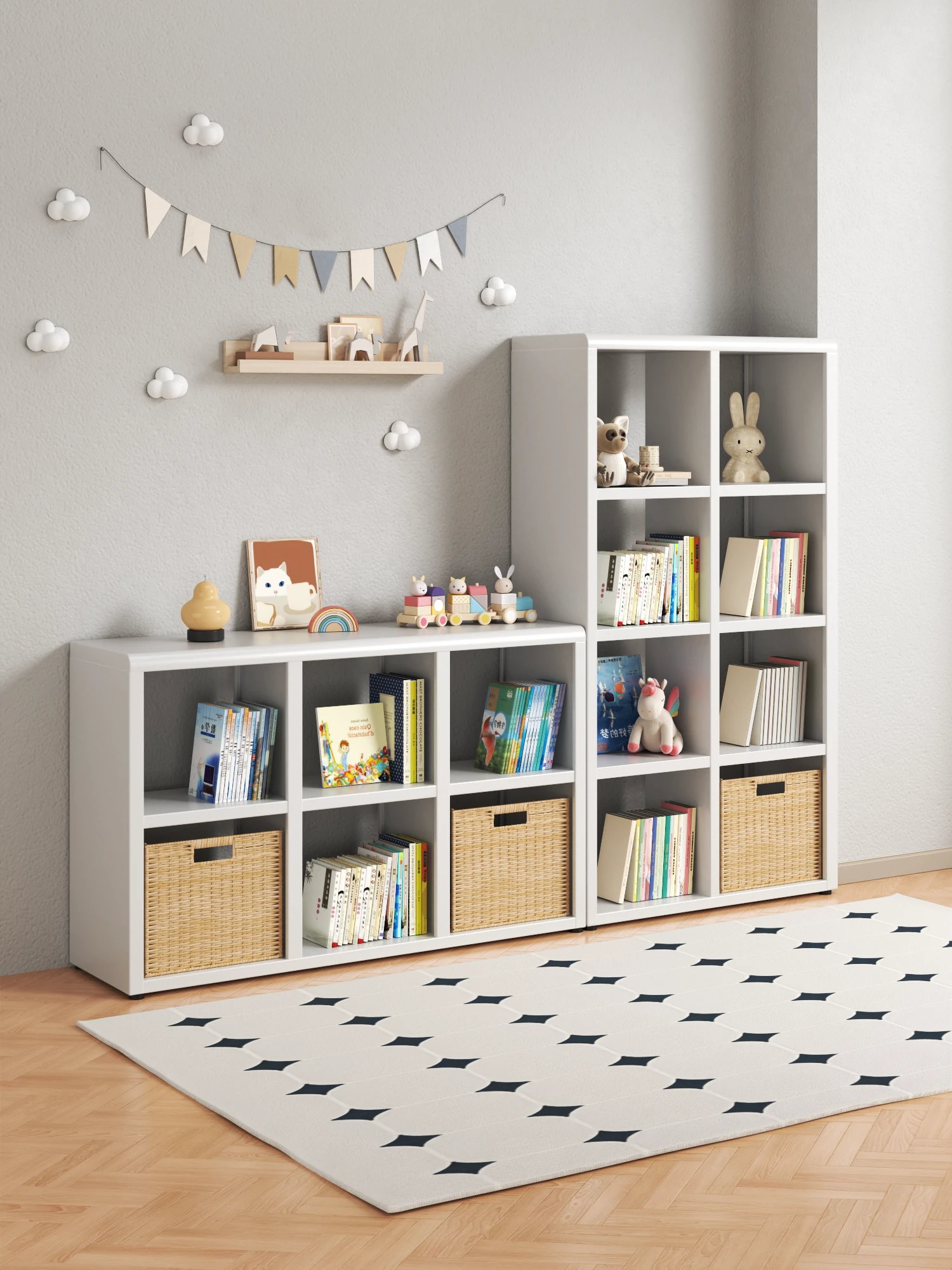 Walnut Solid Wood Grid Cabinet - Stylish Floor Storage Rack, Versatile Bookshelf and Organizer, Perfect Wall-Mounted Solution for Kids' Room, Compact Storage for Toys and Books
