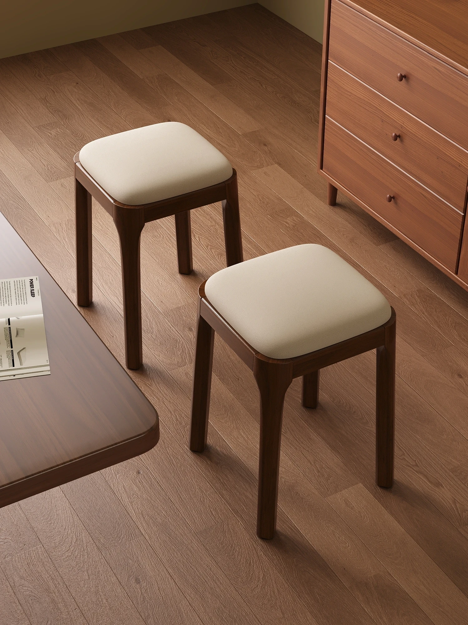 Sturdy Solid Wood Stackable Soft Cushion Square Stool for Home Use - Durable High Stool for Living Room, Dining Room, and Extra Seating for Guests