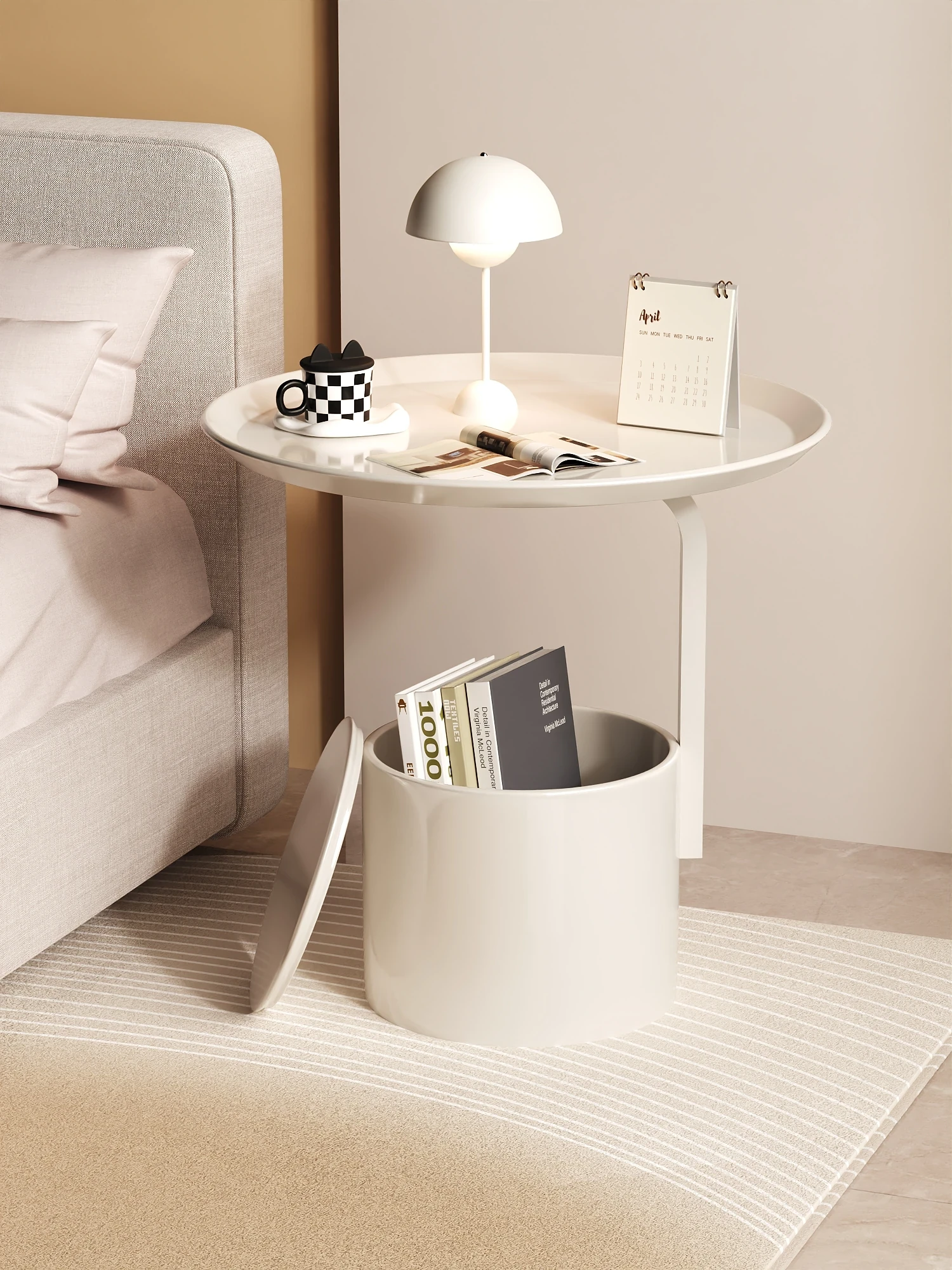 Modern Cream-Style Iron Nightstand - Minimalist Round Side Table for Bedroom, Creative Small Storage Rack, Perfect Home Replacement Solution
