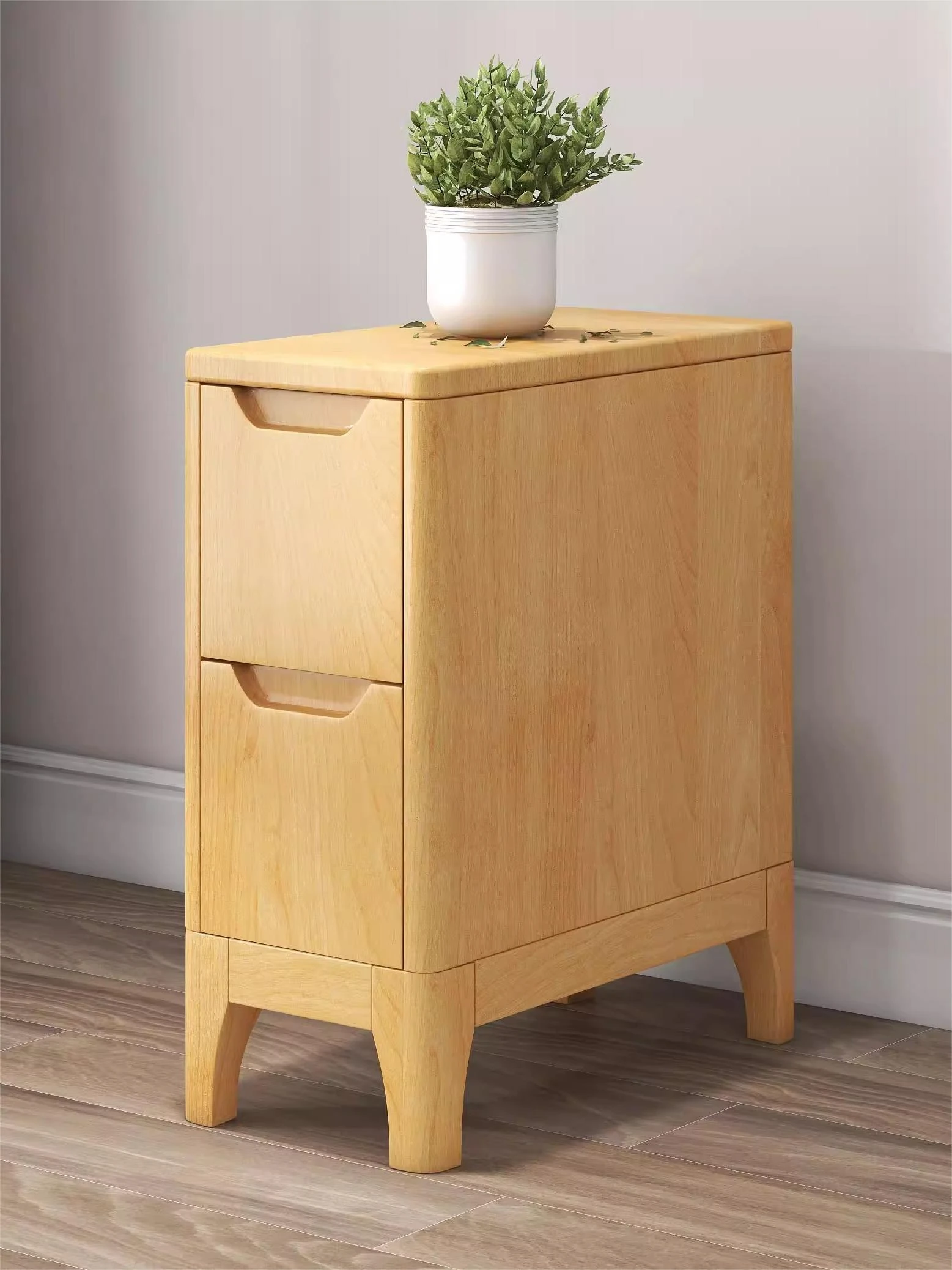 Nordic Minimalist Solid Wood Nightstand - Compact & Slim Bedside Storage Cabinet for Small Bedrooms, Perfect for Narrow Spaces