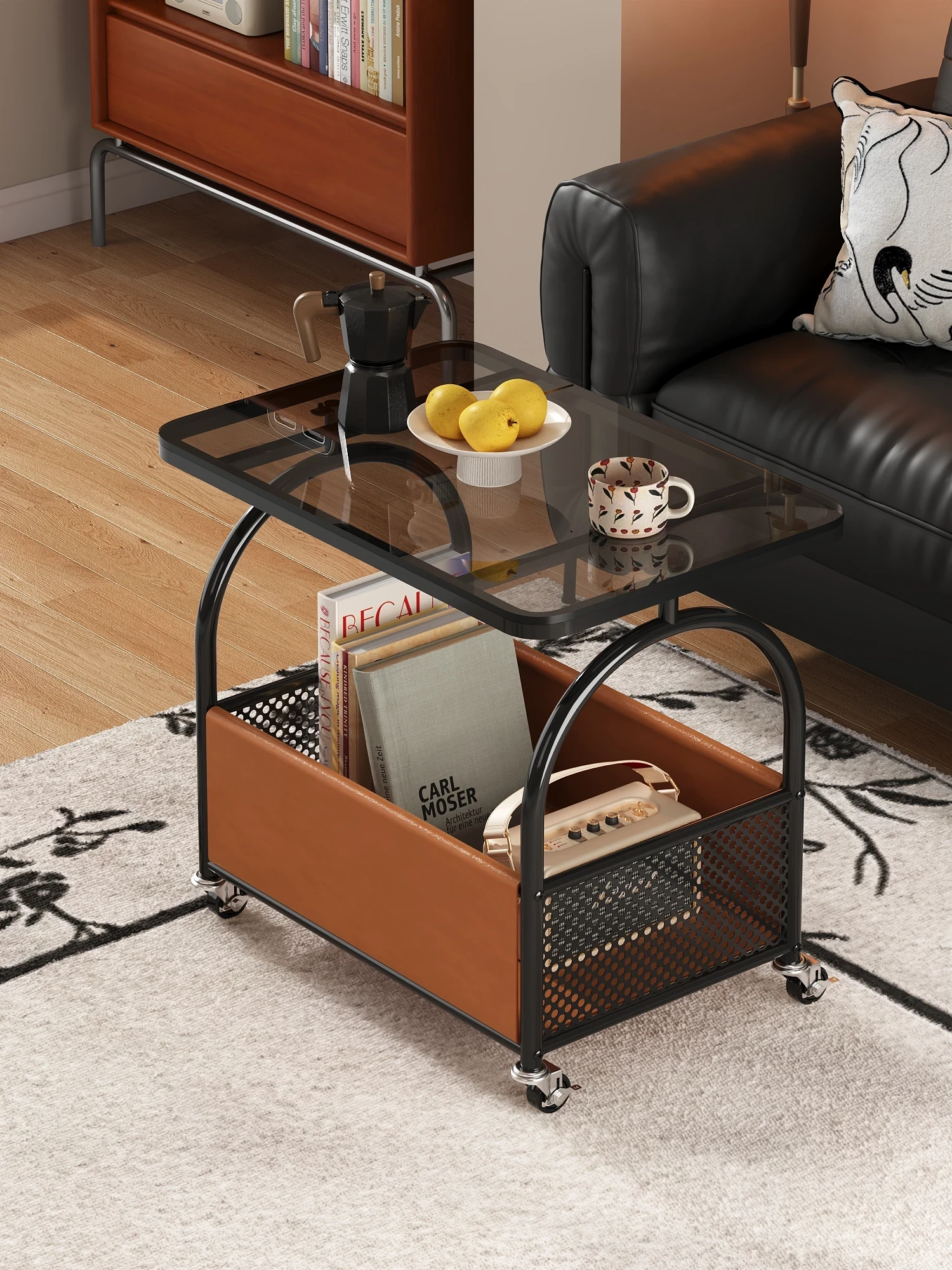 Compact Mobile Side Table - Versatile Tea and Snack Storage Cart for Living Room, Bedroom, or Sofa Side - Stylish and Functional Vintage Design