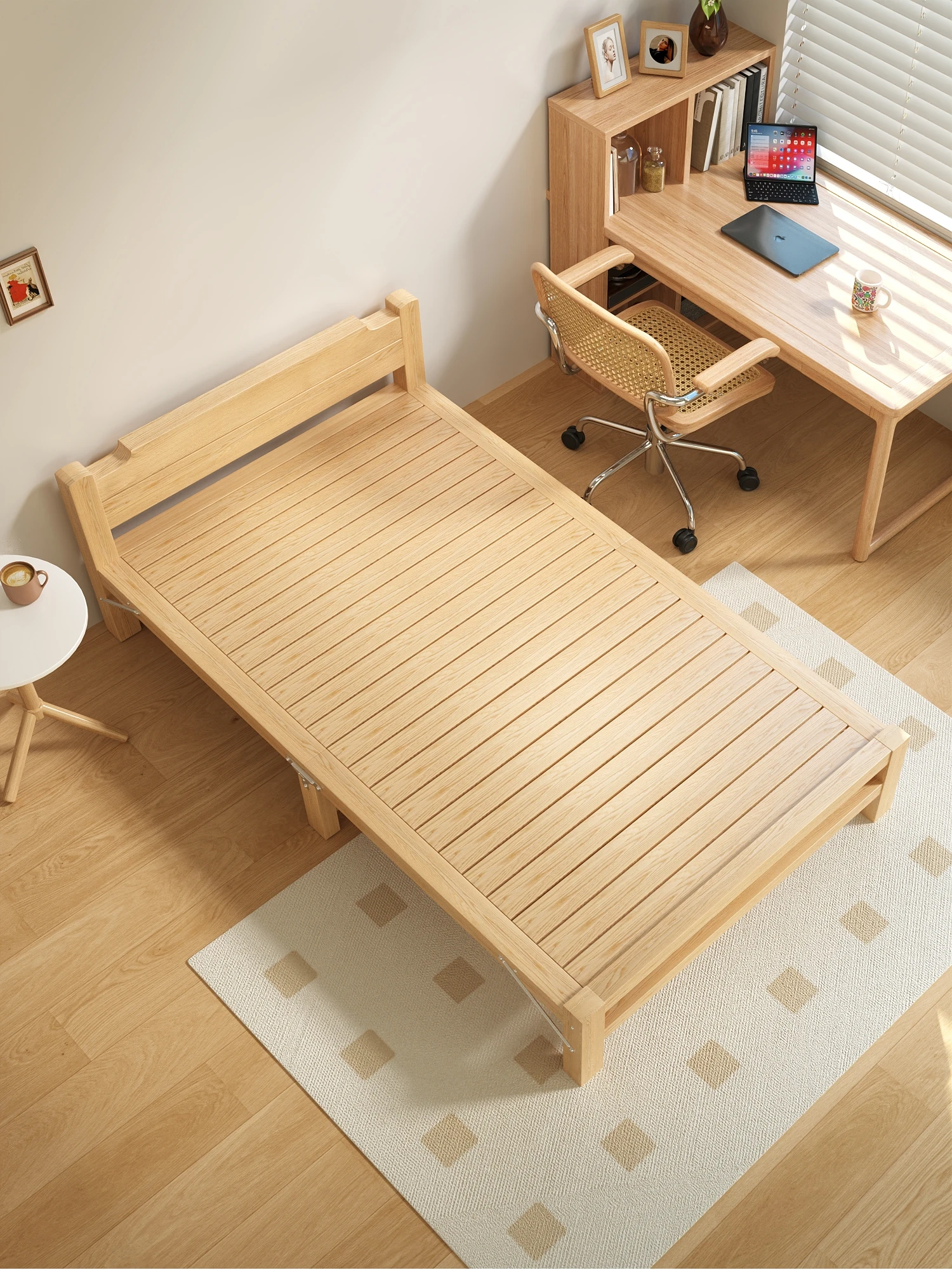 Japanese Style Solid Wood Folding Bed - Compact Single Bed for Home Use, Perfect for Afternoon Naps. 1.2m Adult Nap Bed with Sturdy Hard Board – Ideal Temporary Sleeping Solution.