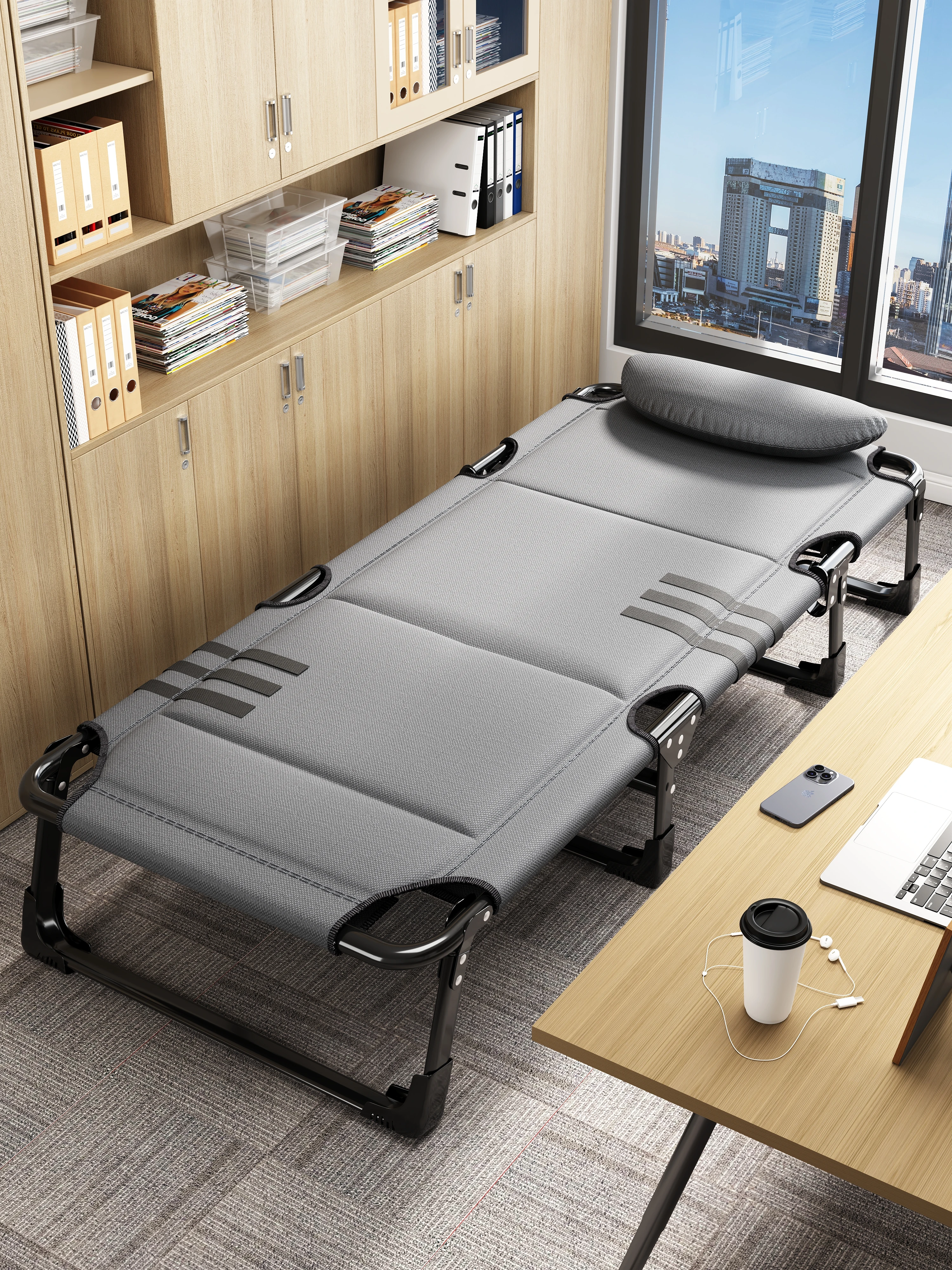 Compact Folding Single Bed for Office Naps - Perfect for Adults! Portable Lounge Chair for Simple Home Use, Ideal for Caregiving and Military Style. Experience Comfort and Convenience in Your Break Time!