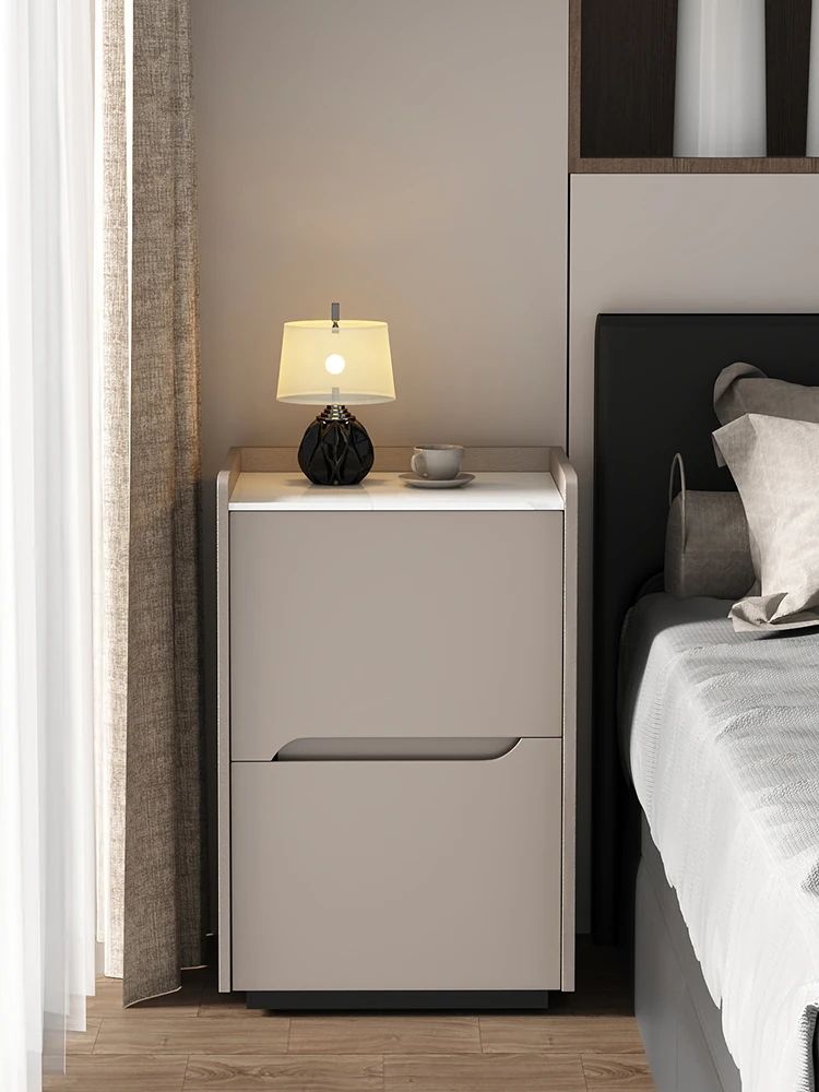 Compact Modern Solid Wood Nightstand - Ultra-Slim Easy Storage Cabinet with Artistic Design for Your Bedroom