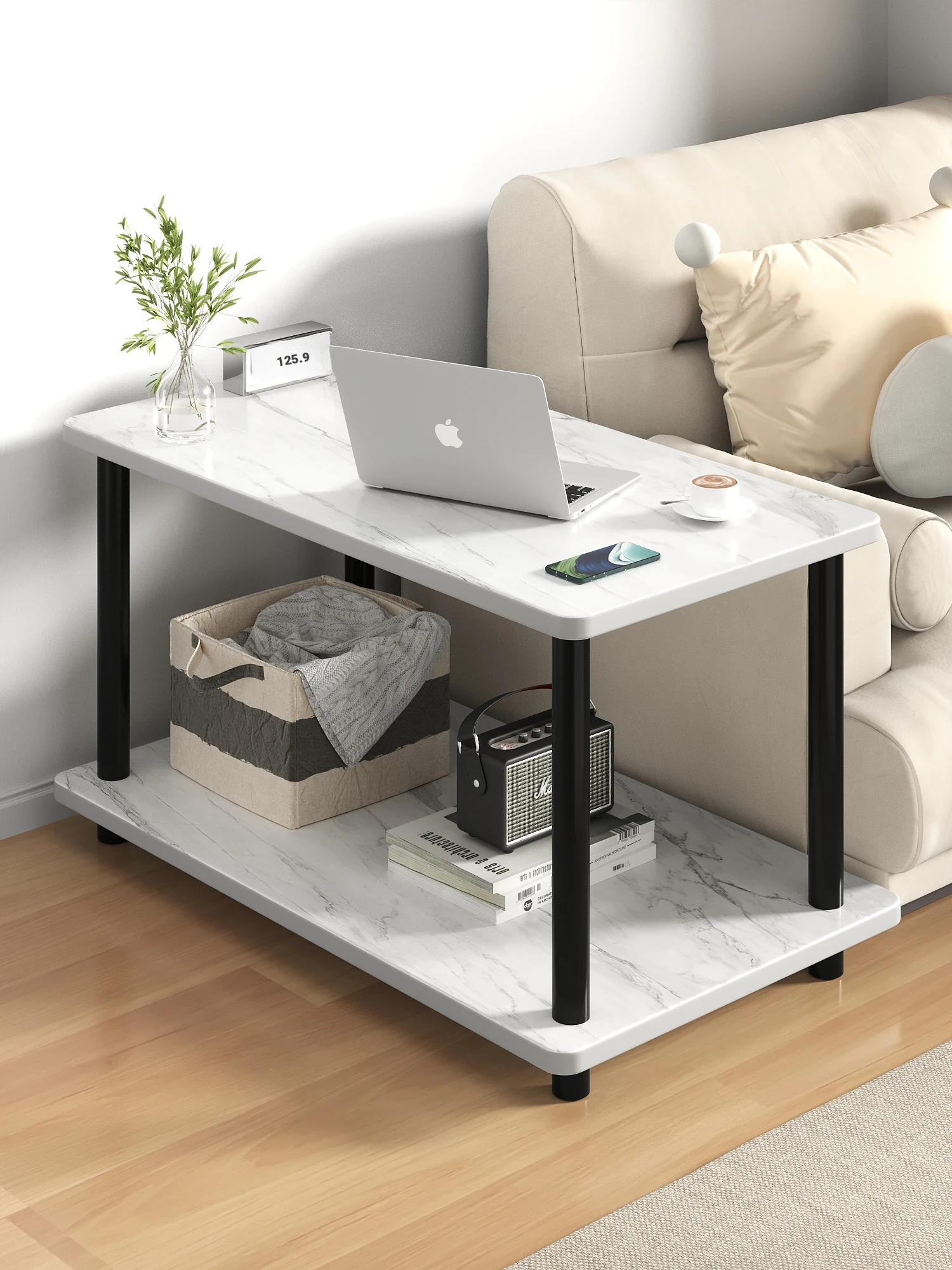Stylish Side Table & Storage Shelf for Small Spaces - Perfect for Living Rooms, Bedrooms, and as a Coffee Table. Compact Design Ideal for Apartments, Featuring Versatile Use as a Nightstand or Accent Table.