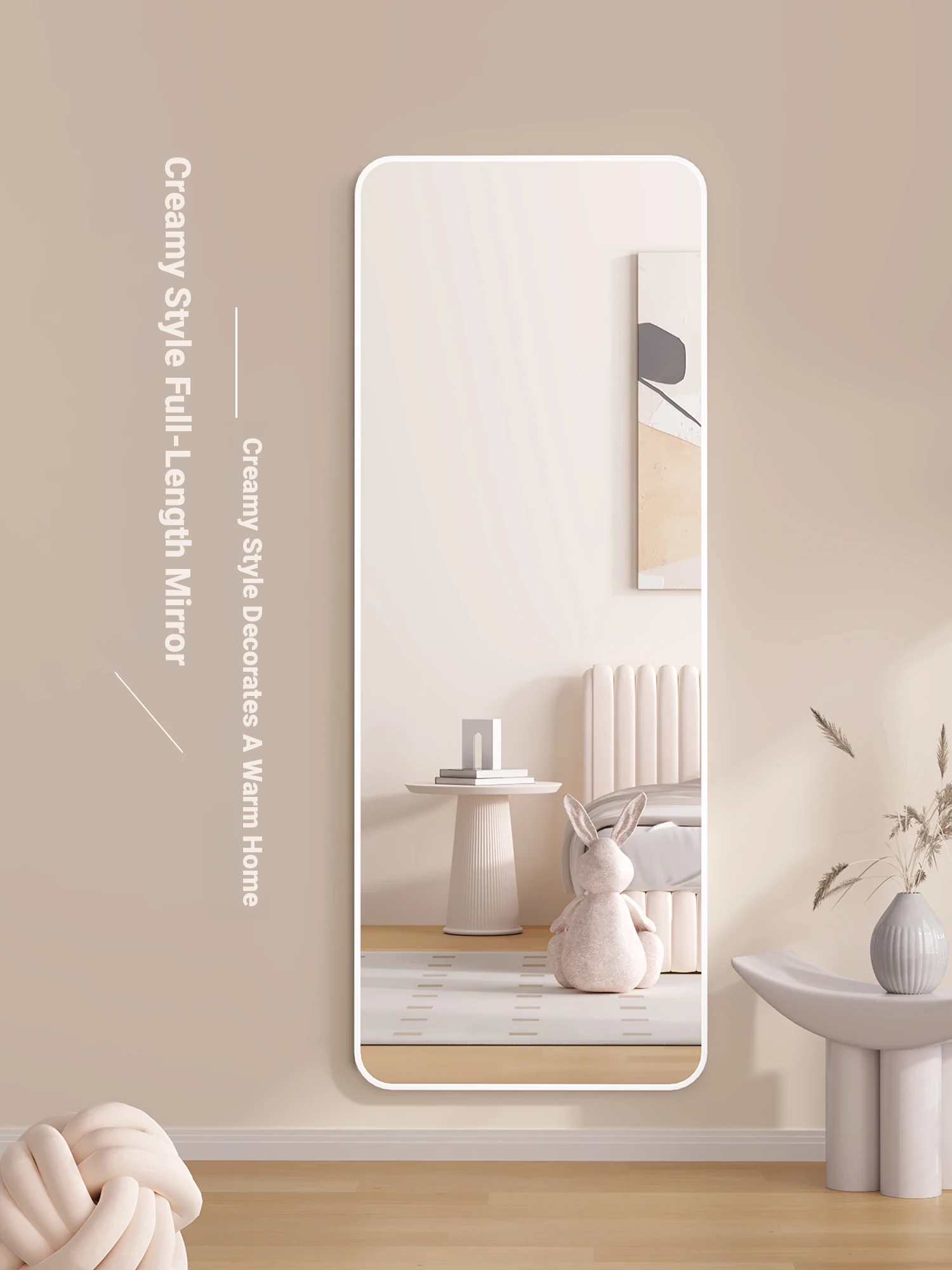 INS Style Cream Wall-Mounted Full-Length Mirror - Perfect for Bedroom and Fashion Retail! Ideal for Trying on Outfits and Enhancing Your Space.