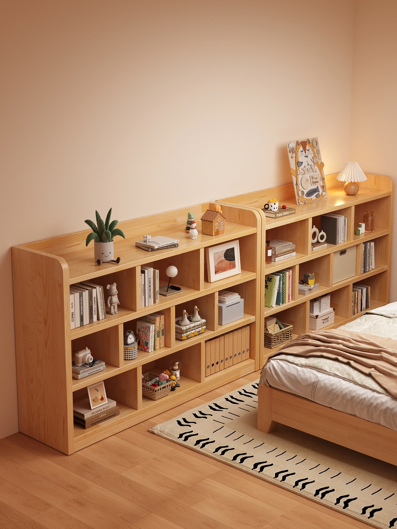 Solid Wood Bookshelf for Kindergarten - Multi-Compartment Low Cabinet and Wall-Mounted Storage Rack, Versatile and Easy to Assemble Cubicle Organizer for Bedrooms and Playrooms