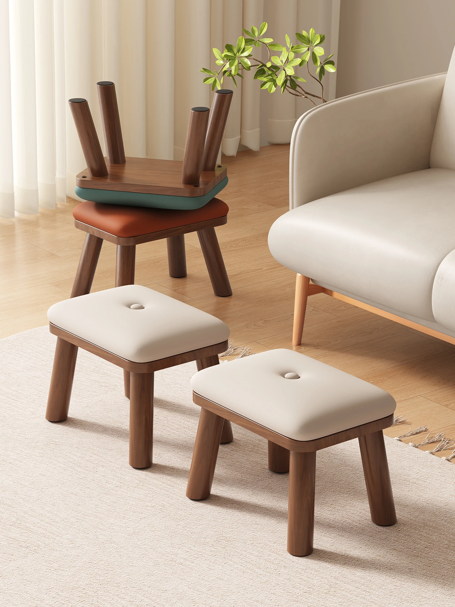 Solid Wood Stool - Comfortable and Durable Low Seat for Home Use, Perfect for Modern Minimalist Spaces, Sofa Side, and Shoe Changing Bench. Ideal for Long Sitting!