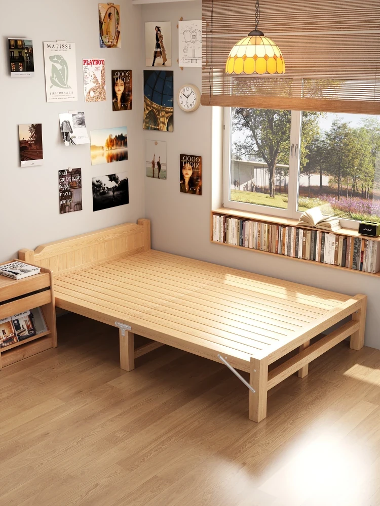 Solid Wood Folding Bed - Space-Saving Single Bed (1.2m) & Double Bed (1.5m) for Home, Rental, or Dorm Use - Durable Hardboard Design for Guest and Temporary Sleeping Solutions