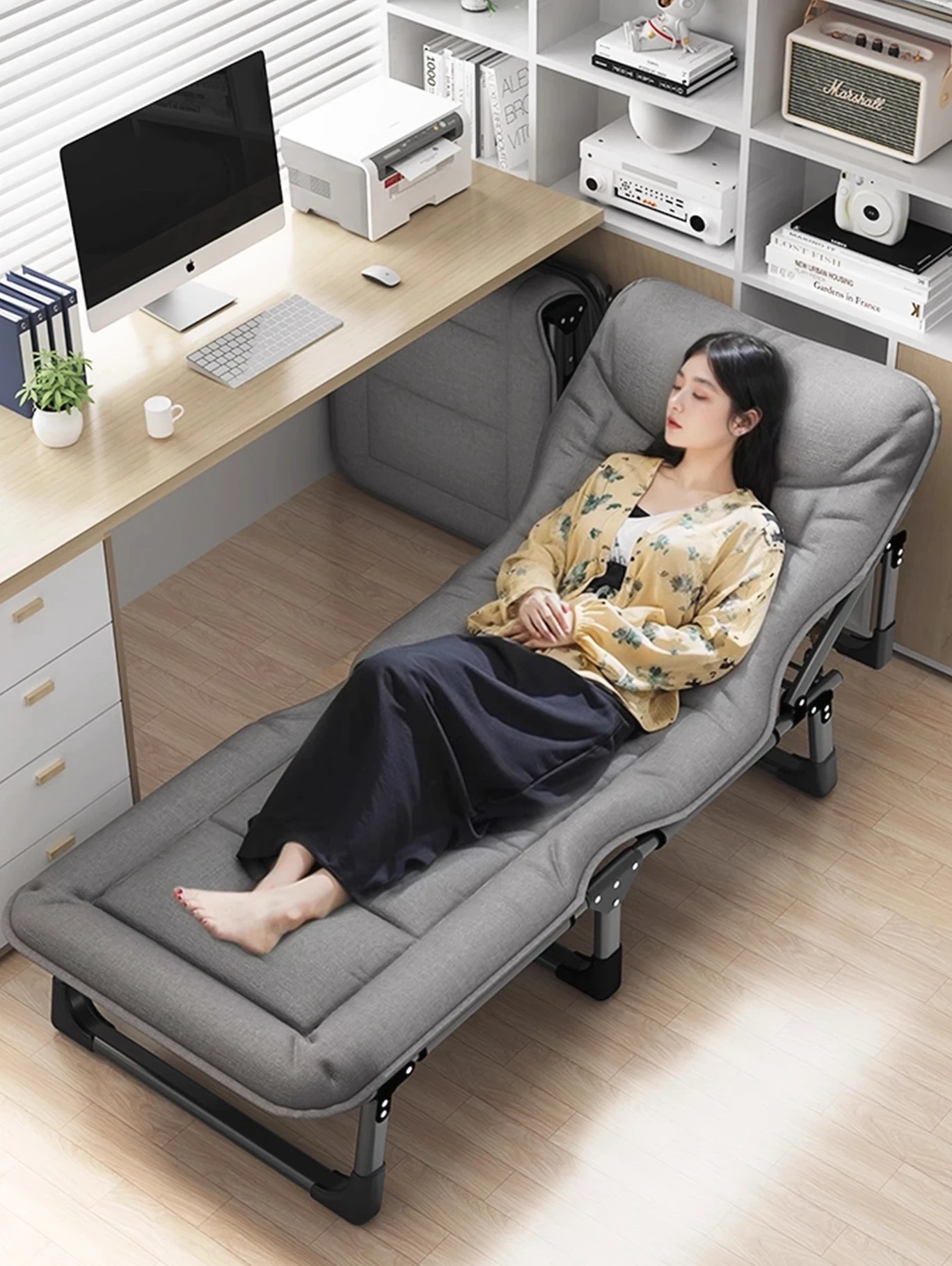 Compact Folding Single Bed for Napping - Portable Office Lounge Chair for Adults, Perfect for Quick Rest and Relaxation, Lightweight Camp Bed for Easy Travel and Comfort
