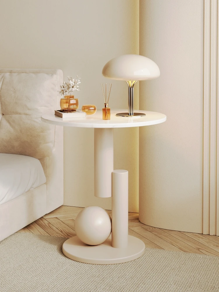 Artistic Round Coffee Table - Creative Designer End Table for Living Room & Bedroom, Elegant Creamy Aesthetic, Perfect for Home Use & as Nightstand.