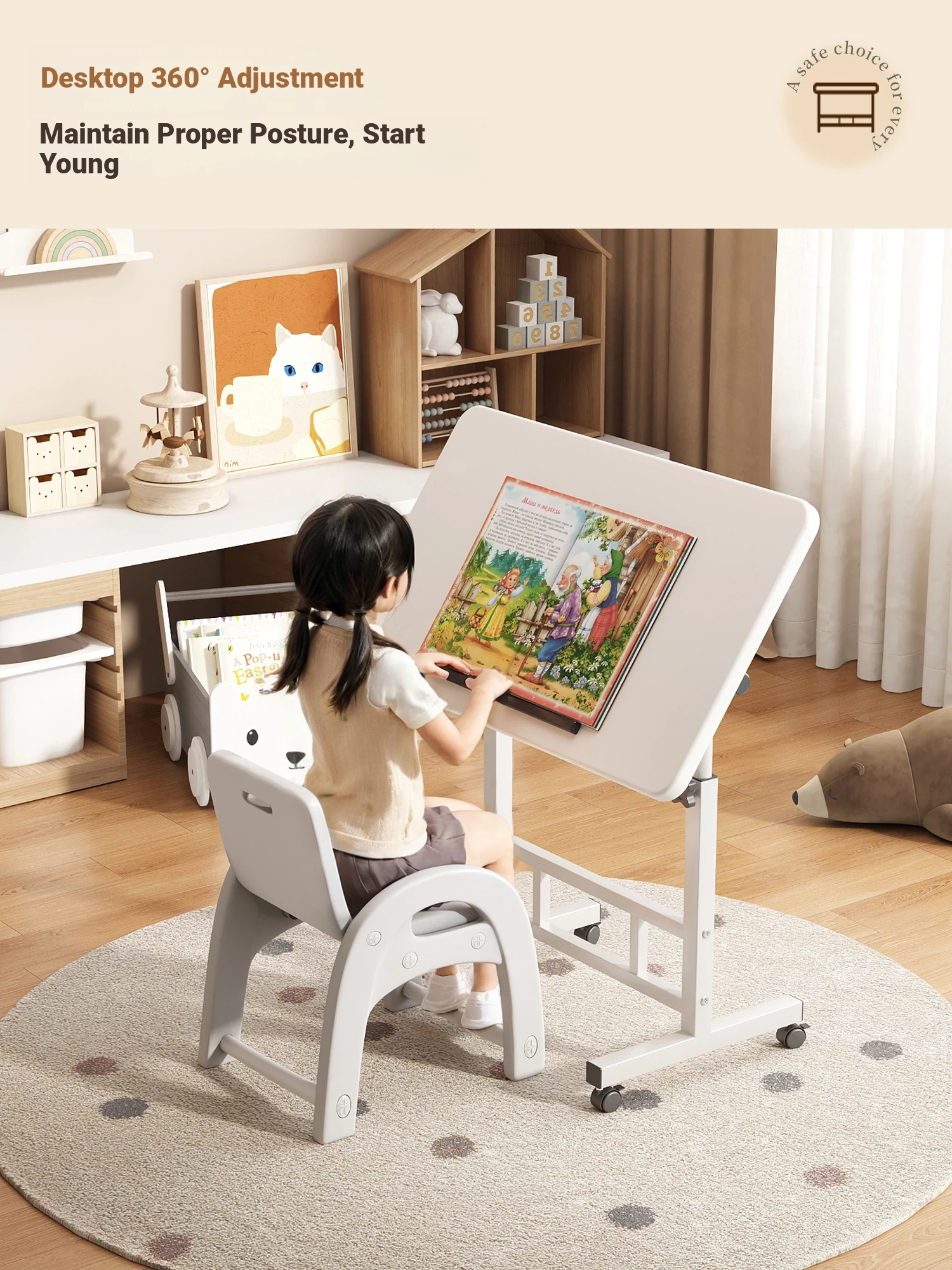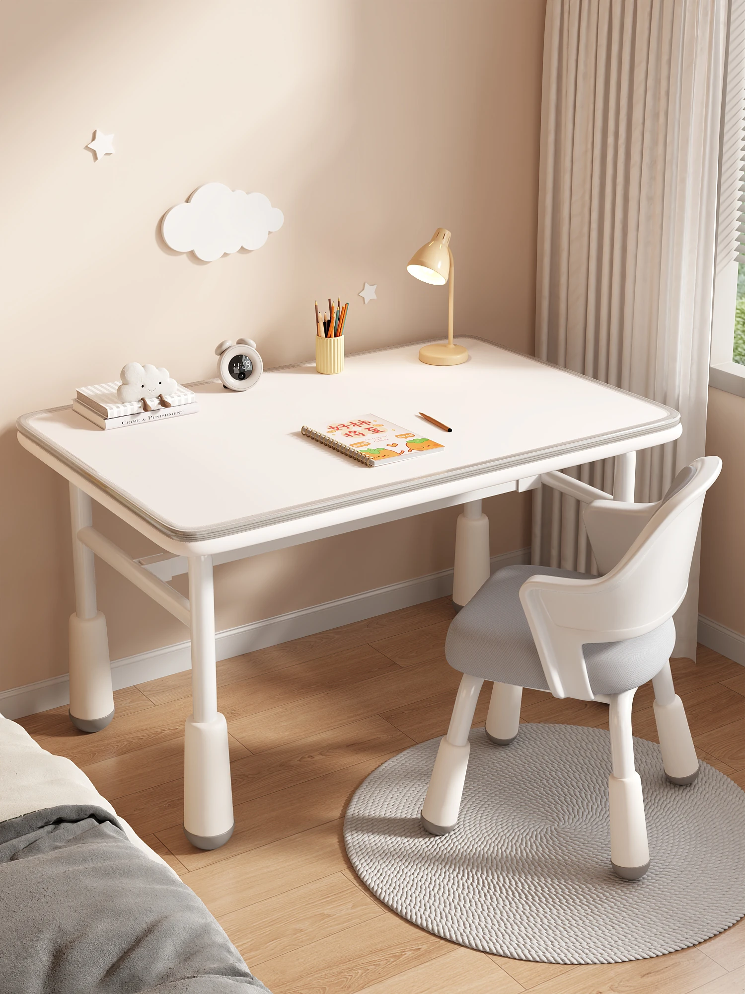 Adjustable Kids Study Desk and Chair Set - Modern Home Learning Desk for Elementary Students, Ergonomic and Height-Adjustable Writing Table for Homework and Study