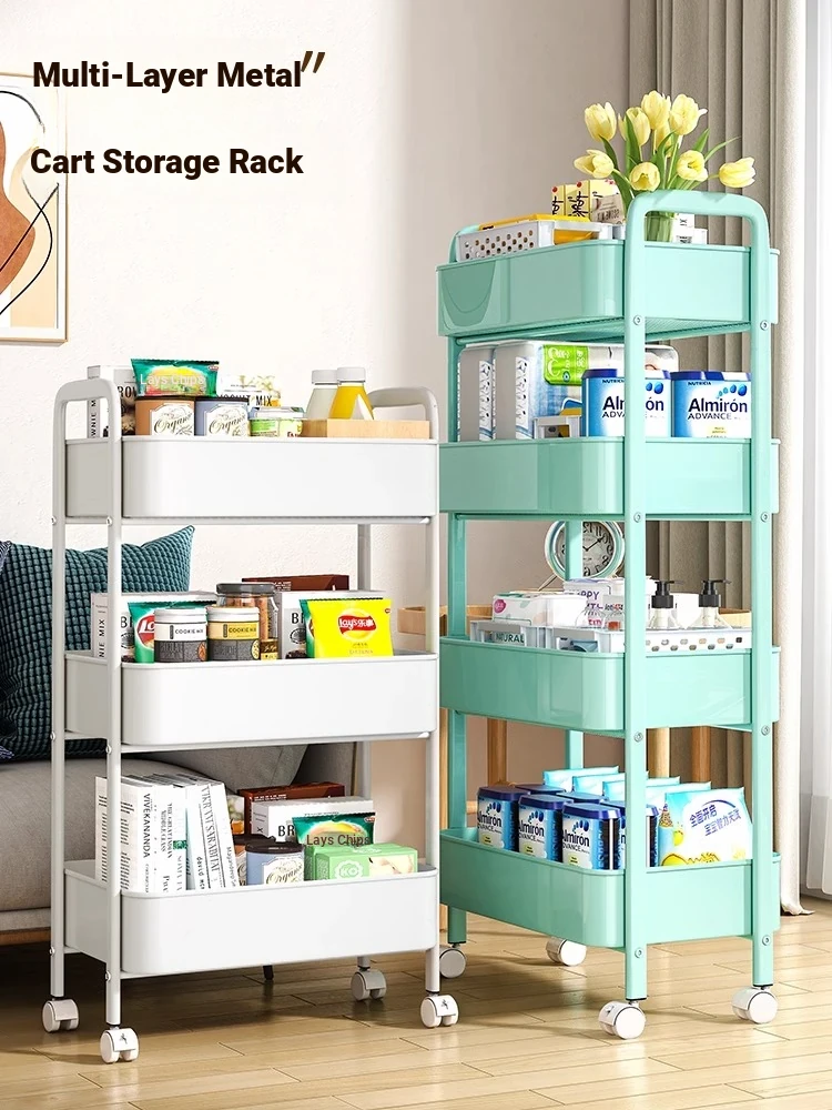 Mobile Iron Cart with Wheels - Multi-layer Storage Rack for Books, Snacks, and Supplies - Ideal for Student Dorms and Kids' Rooms