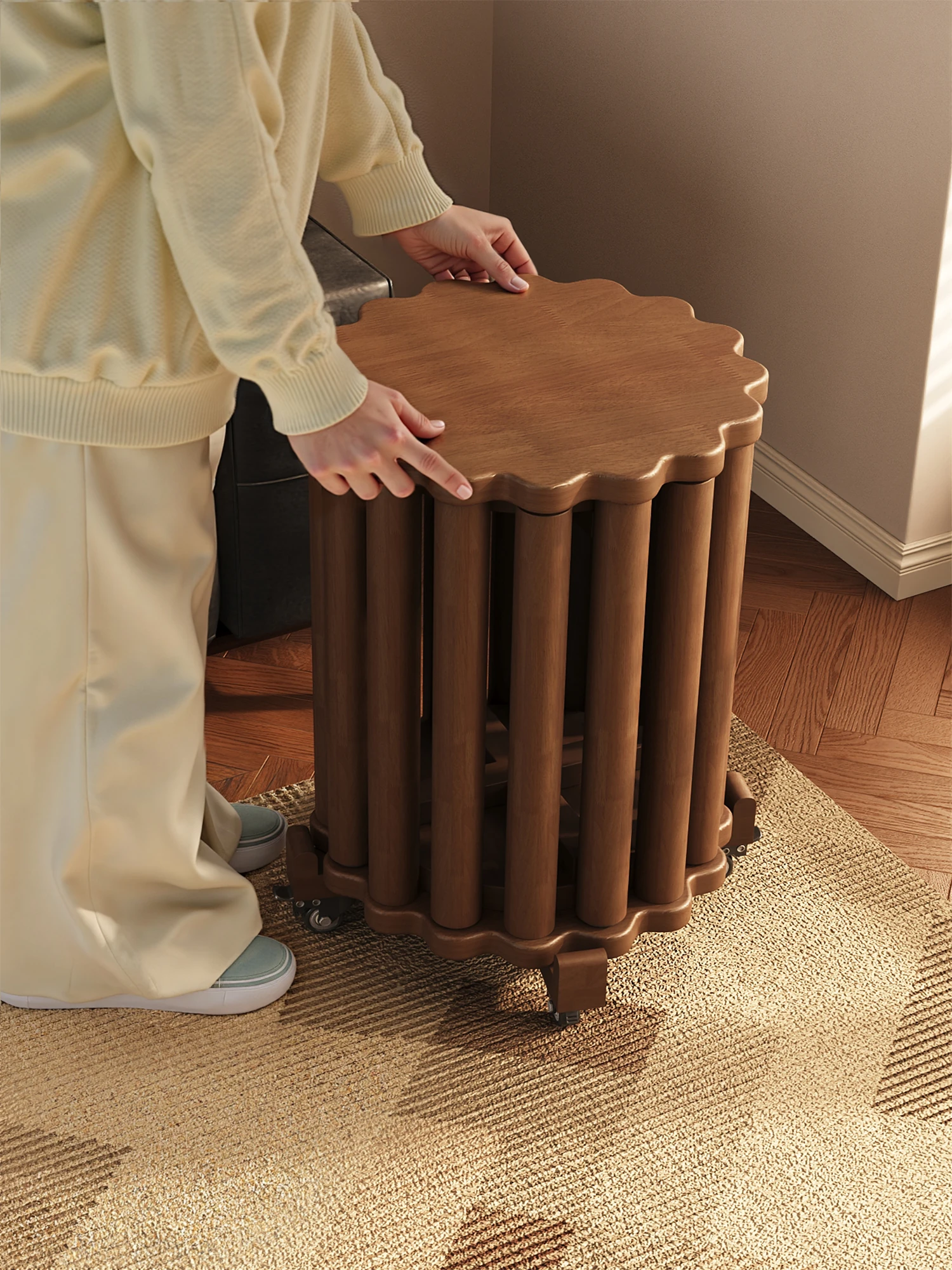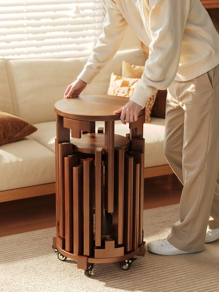 Versatile Solid Wood Stacking Stool - 6-in-1 Space-Saving Round Bench for Home Use, Vintage Chinese Design, Perfect for Guests and Extra Seating