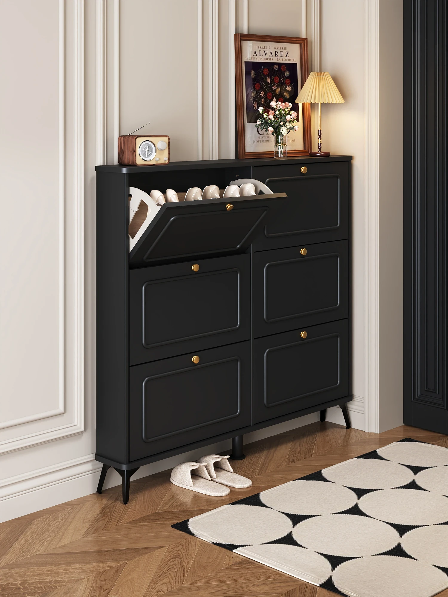 2025年新登场!超薄実木シューズキャビネット 家庭用・玄関用・省スペースデザイン 壁にぴったり寄せられる収納力抜群の小型キャビネット!おしゃれで機能的な玄関を演出します。