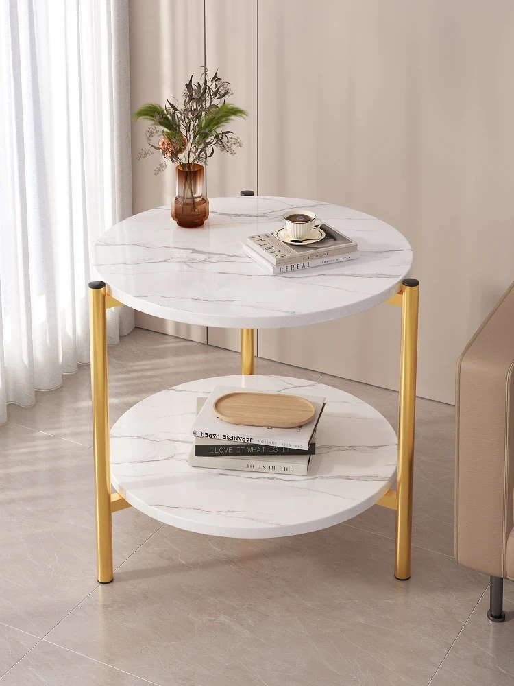 新型現代デザインの丸型サイドテーブル - 寝室やリビングに最適!コンパクトでスタイリッシュ、小さなお部屋でも大活躍!おしゃれな岩板の質感が魅力的なコーヒーテーブル。オフィスやソファサイドにもぴったりです。