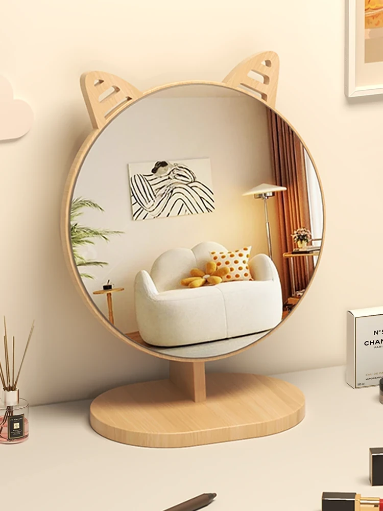 大きな折りたたみ式デスクトップメイクミラー - シンプルな木製デザイン、可愛いキャラクター付き!家庭用に最適なポータブルサイズで、どこでも美しさを引き立てるアイテムです。