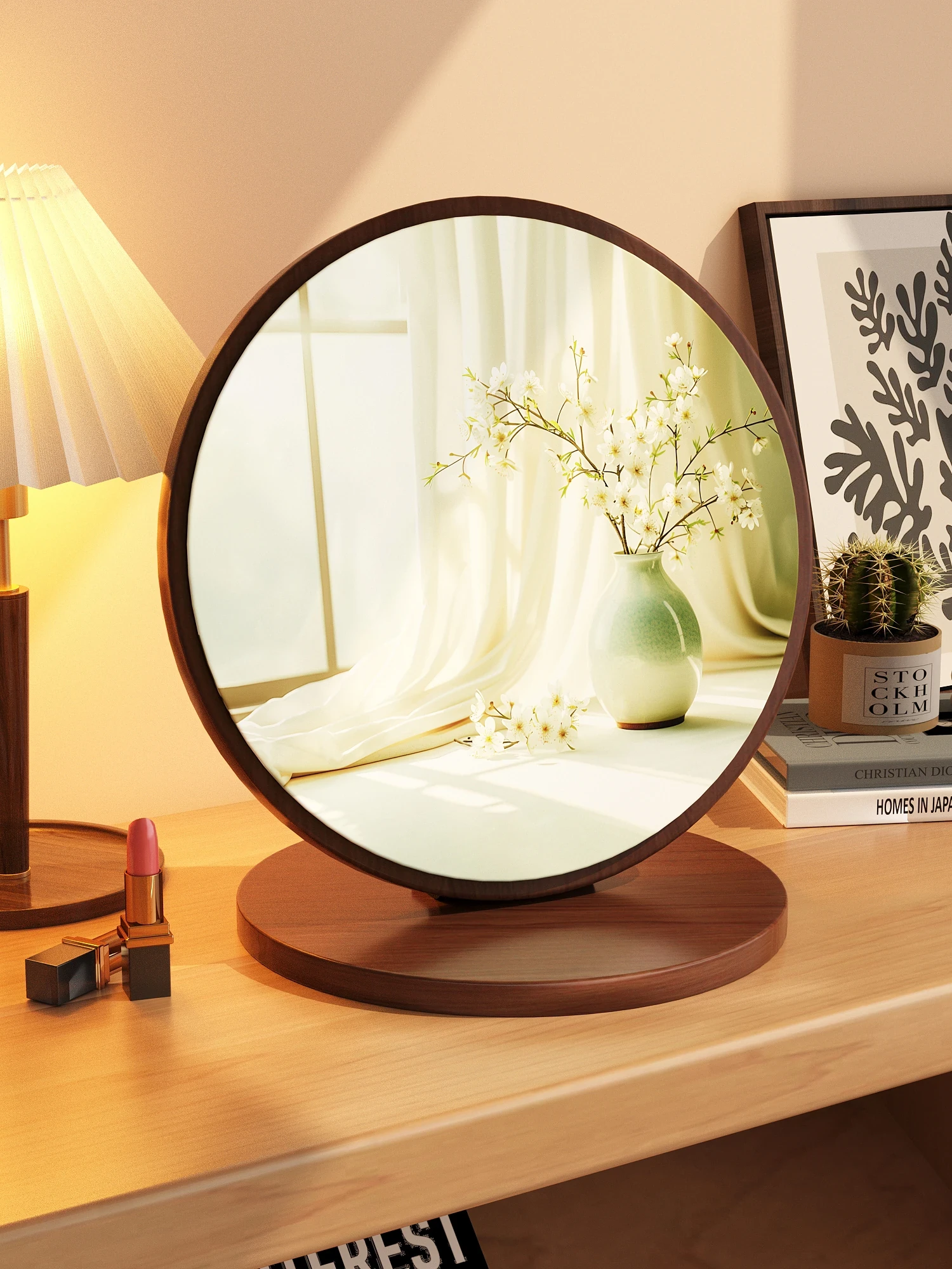 自宅用実木製化粧鏡!デスクトップ型の女性用ドレッシングミラー、レトロデザインで持ち運びも便利な大サイズ。あなたの美しさを引き立てる必須アイテム!