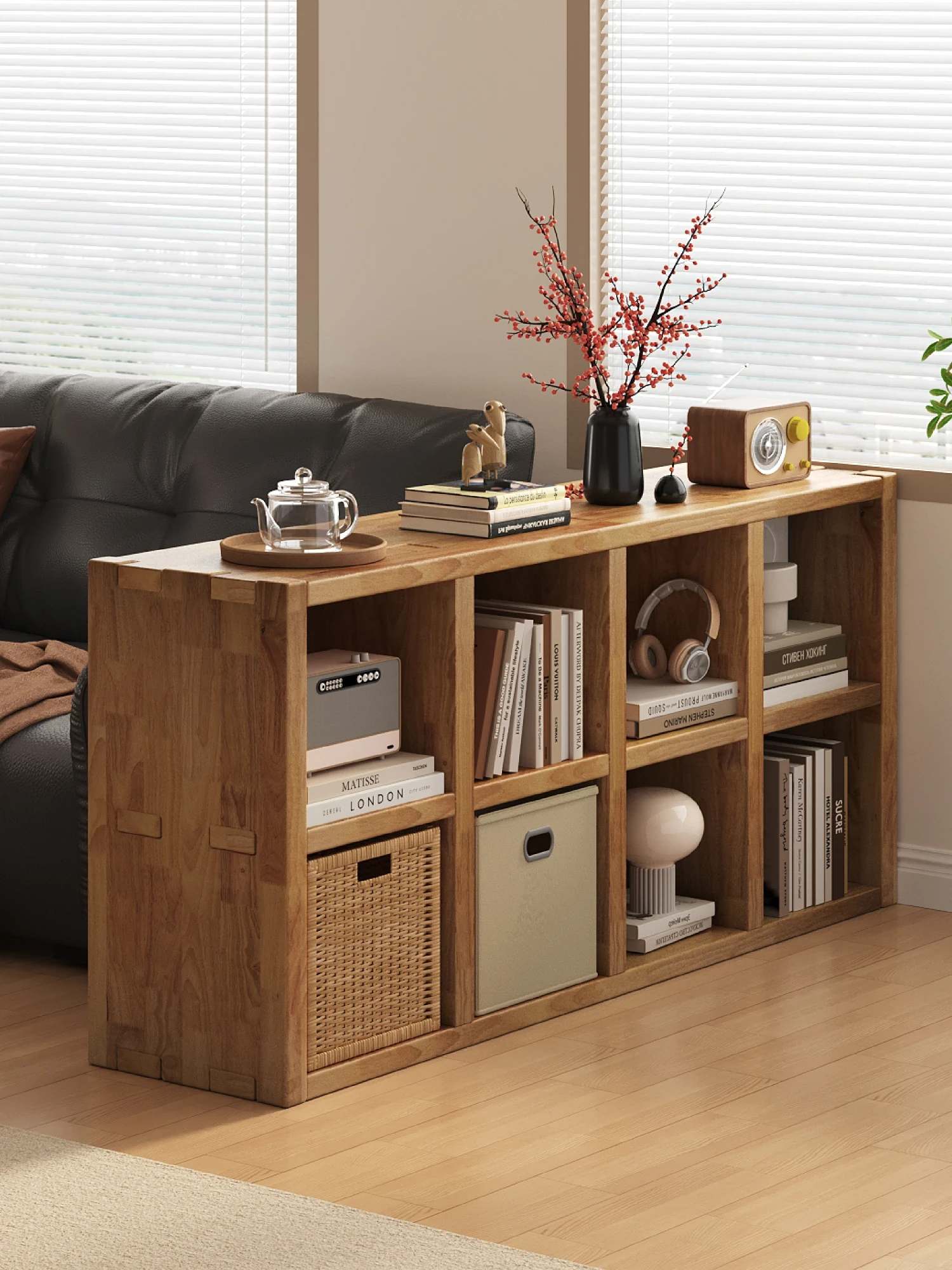 天然木製の本棚 - リビングの間仕切りにも最適!壁掛け収納やソファ横のサイドキャビネットとしても活躍する、スタイリッシュな和風グリッドデザインのローキャビネット。おしゃれに収納して、空間を有効活用!