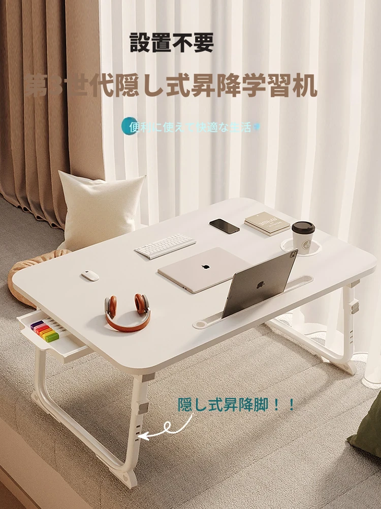 折りたたみ式のミニデスク - 寝室や学生寮に最適!昇降機能付きで、快適な勉強や作業が可能。リビングや窓辺でも使える便利なテーブル、あなたのライフスタイルにぴったりです!
