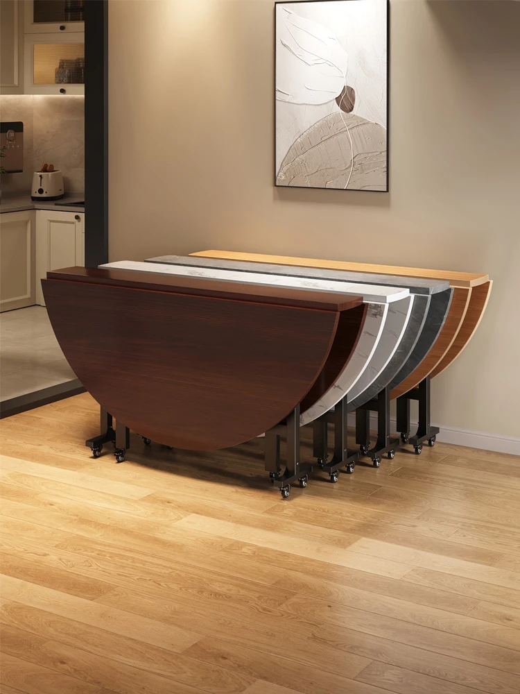 折りたたみ式の円形ダイニングテーブル - 中古風デザイン!小スペースに最適で、最大10名様まで対応可能。家庭やレストランにぴったりな便利なアイテムです。
