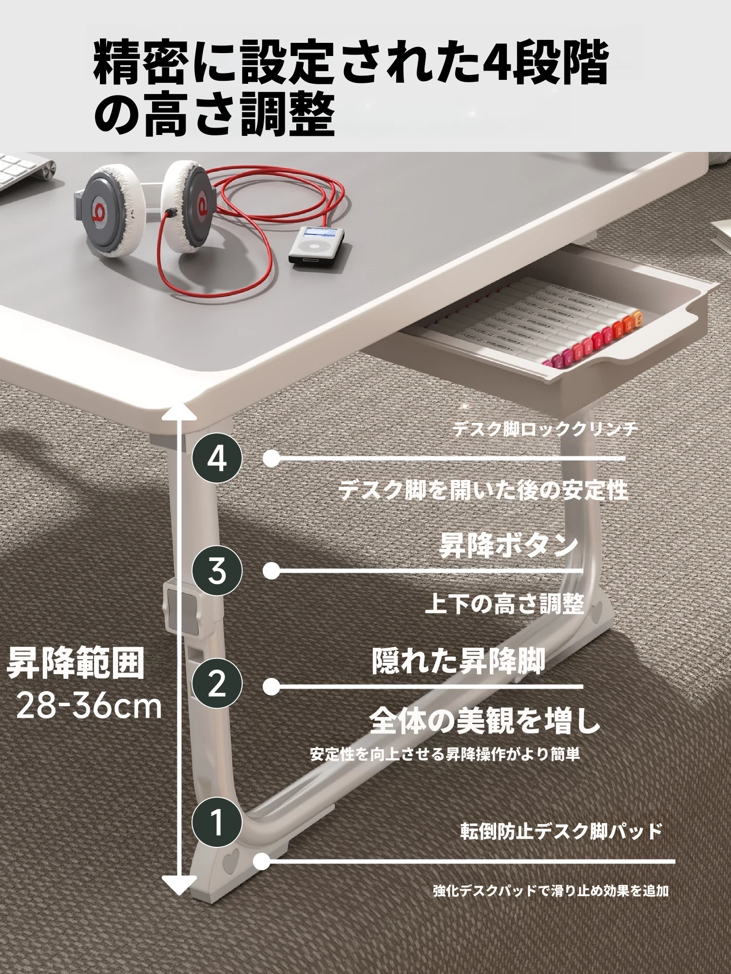 昇降式折りたたみテーブル - 学生のための学習デスク、宿舎用のコンピュータデスク、家庭用窓辺の書斎。コンパクトで便利、スペースを有効活用し、快適な作業環境を提供します!