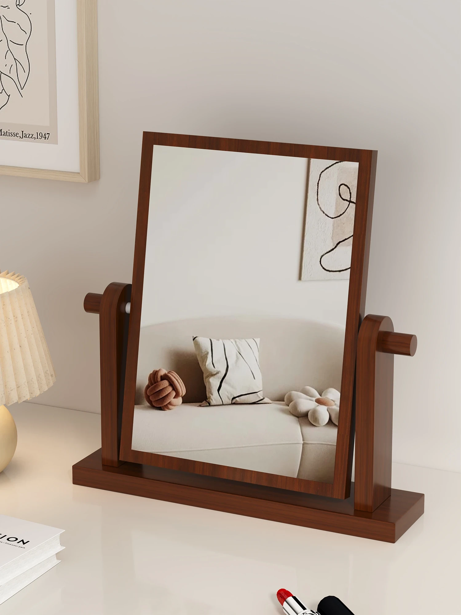ヴィンテージ風の大きな化粧鏡 - 中古の無垢材デスクトップ鏡、家庭用・台式・高画質、女性の寝室に最適!おしゃれなインテリアとしても、機能性抜群のアイテムです。