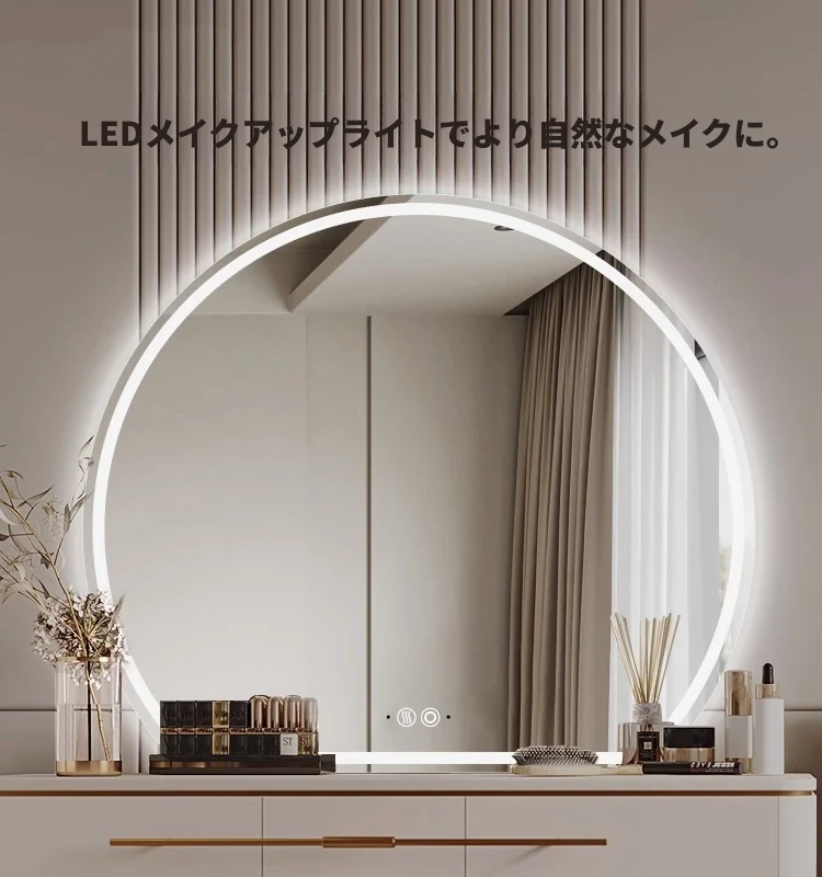 スマートLED化粧鏡 - 壁掛け式ライト付き!女子の寝室にぴったりなメイク台用ミラー。おしゃれなデザインで、補光効果抜群!お部屋の雰囲気を華やかにし、毎日のメイクを楽しくサポートします。