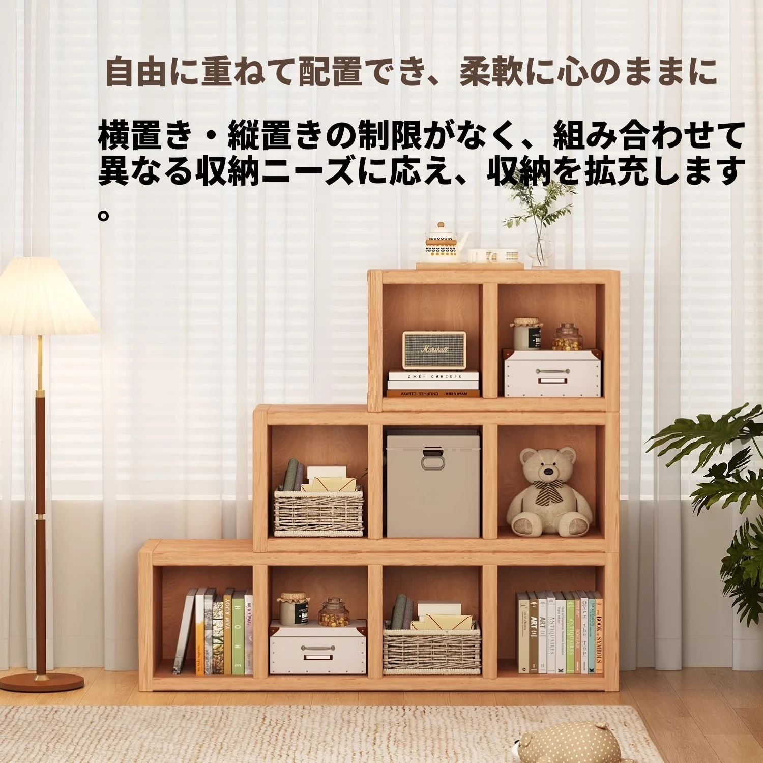 天然木製の本棚・収納ラック|壁寄せタイプのスタイリッシュなグリッドキャビネット|リビング・幼稚園向けのコンパクト収納|使いやすい省スペース設計で、家中がスッキリ!