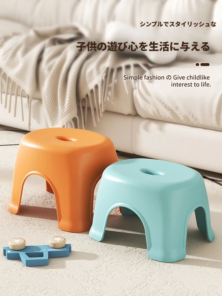 スリムなプラスチック製小椅子|家庭用・積み重ね可能・リビング用・子供用・滑り止め付き・シンプルなデザイン・靴を履く時に最適なテーブル用スツール!あなたの生活空間にぴったりの便利なアイテムです!